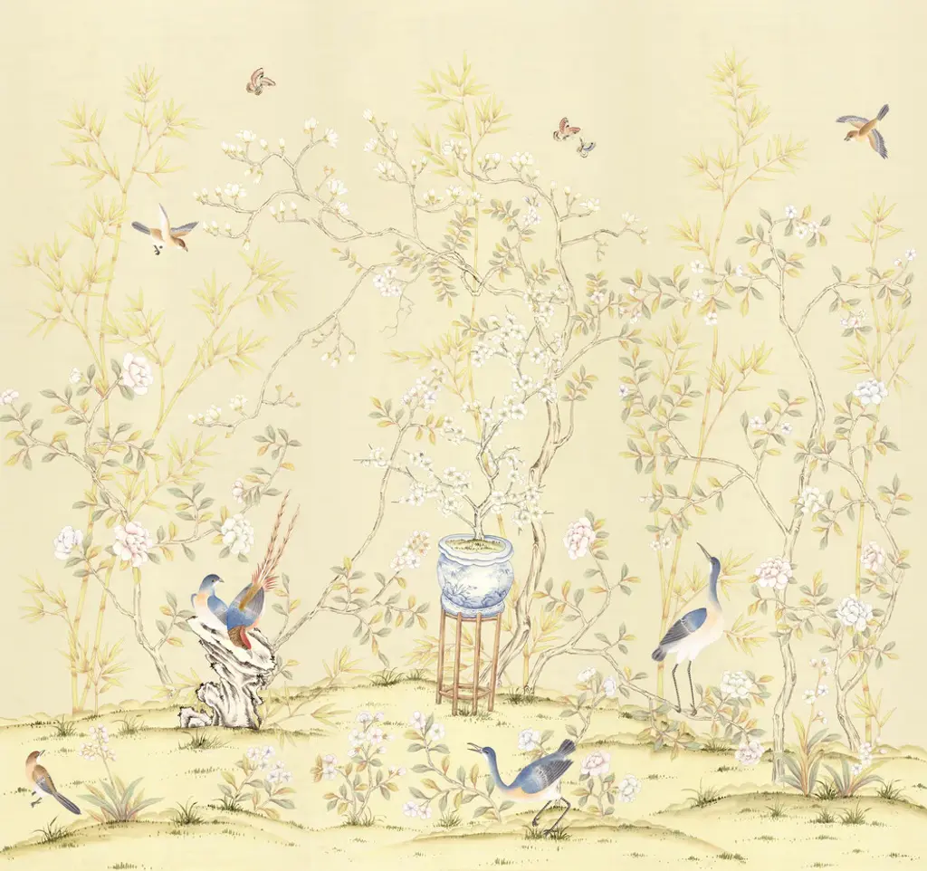 Chinoiserie Wall Mural Chai Wan Triptych, Cream, Large