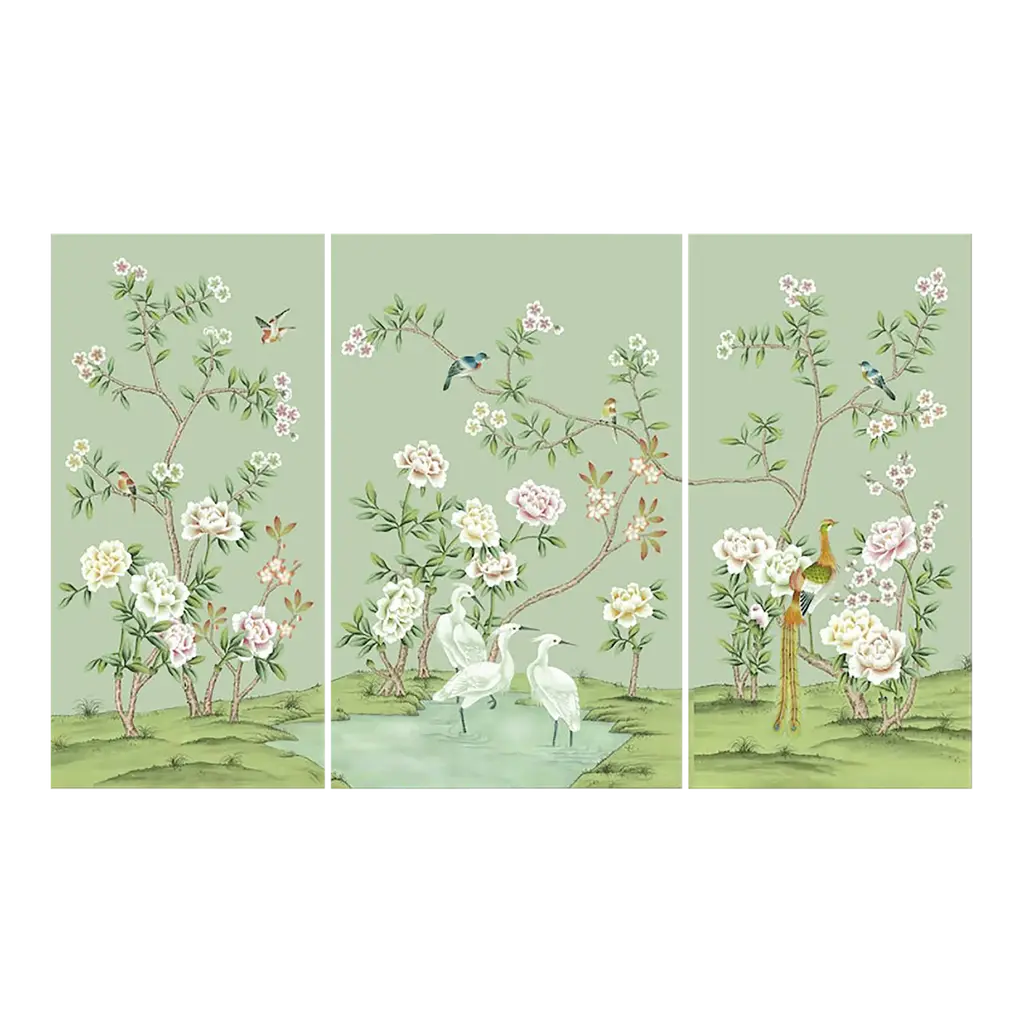 Chinoiserie with colorful pheasants and flowering trees. No. of Panels 2 - PW (Panel Width) 36 - DH (Design Height) 88