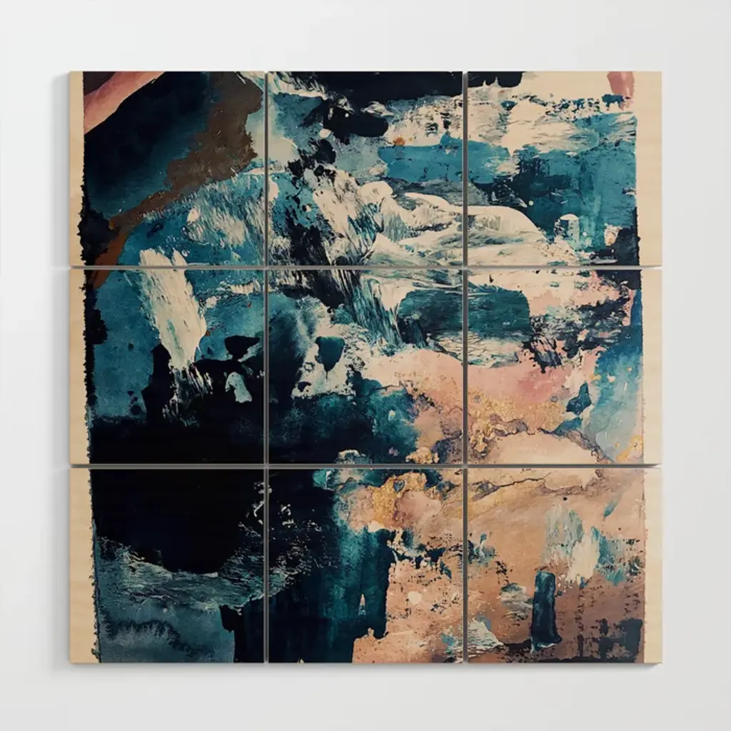 Go rustic with it. The Deny wood wall mural, features your favorite design on 1/2" Baltic Birch. The wood wall mural offers a warm and cabin-like alternative to the classic art print or canvas. Coming in a set of nine tiles, you can arrange them on your wall and adjust the space between each tile to create any number of different looks. And the best part? Every purchase pays the artist who designed it supporting creativity worldwide.