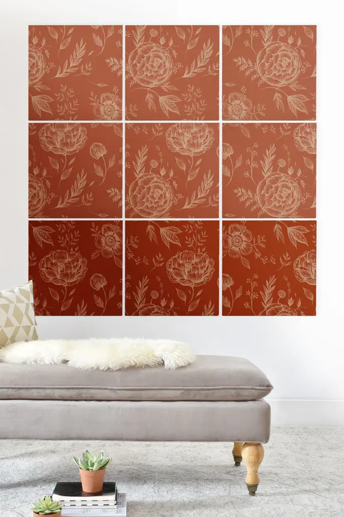 Deny Designs Pimlada Phuapradit Sienna Floral Linework Wood Wall Mural, 4'x4'