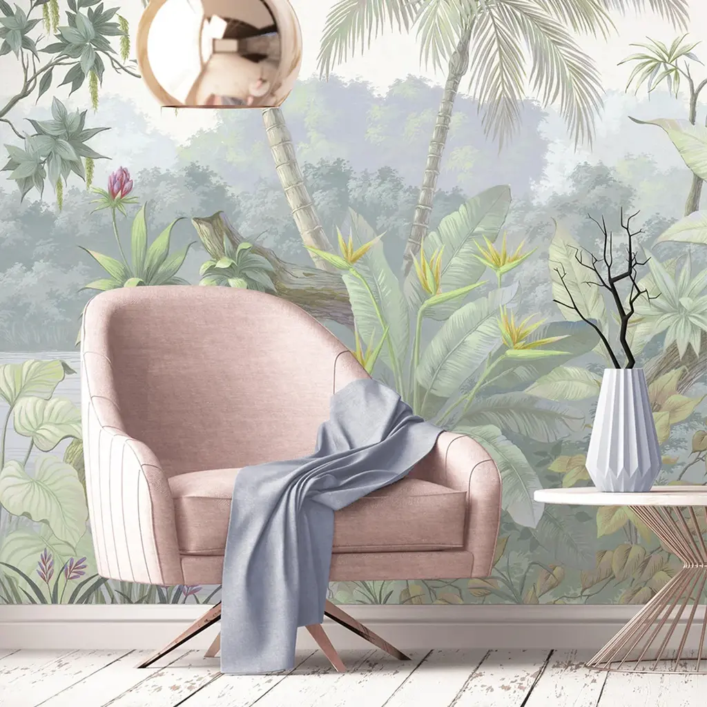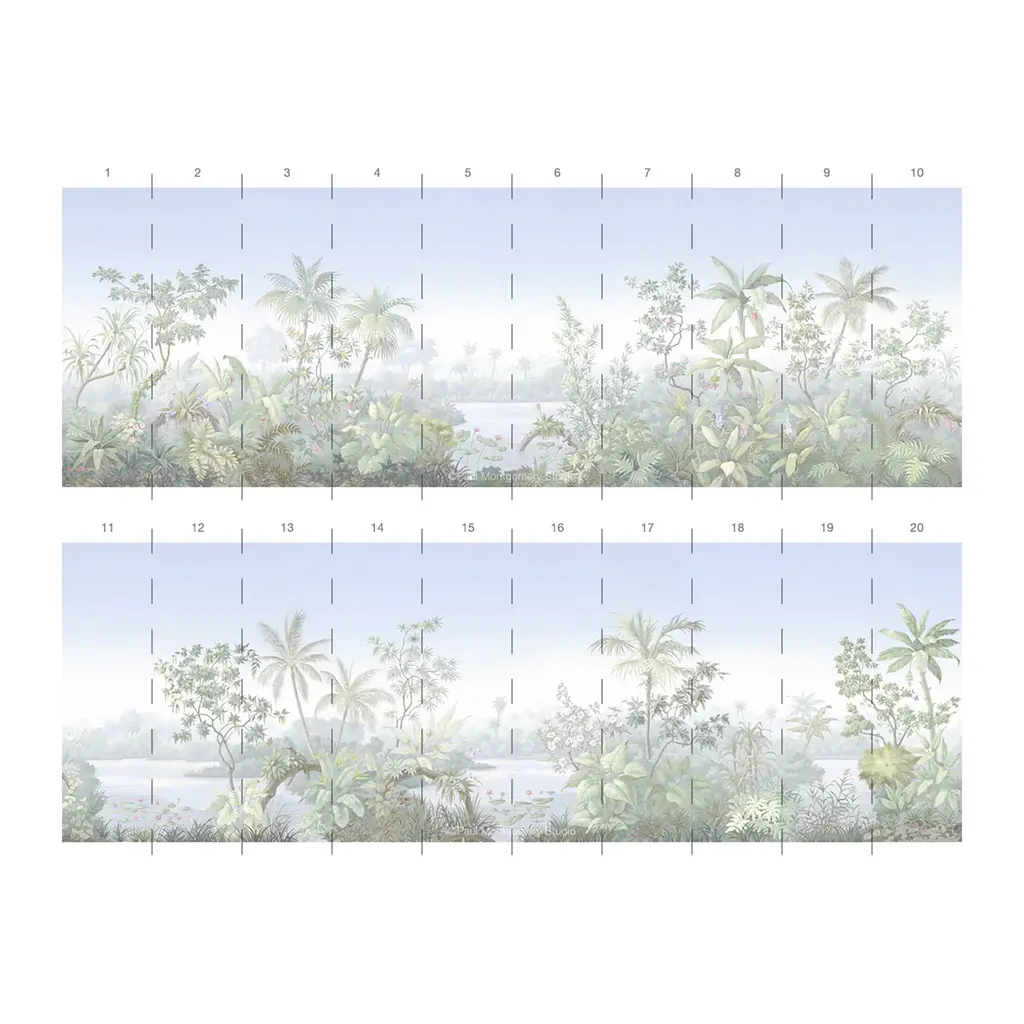 Floridana Seaside is a beautiful tropical landscape mural depicting palms, banana trees, and orchids. Recolored for Paul Montgomery by Lillian August in a gentle Pastel color theme. To purchase a sample of this mural, please visit our Wall Mural Sample listing. Ships In 5-6 Weeks Design height is 96" Covers 30 sq. ft. per panel Made to order This image is for illustrative purposes only. The colors shown are accurate within the constraints of lighting, photography, and the color accuracy of your screen.