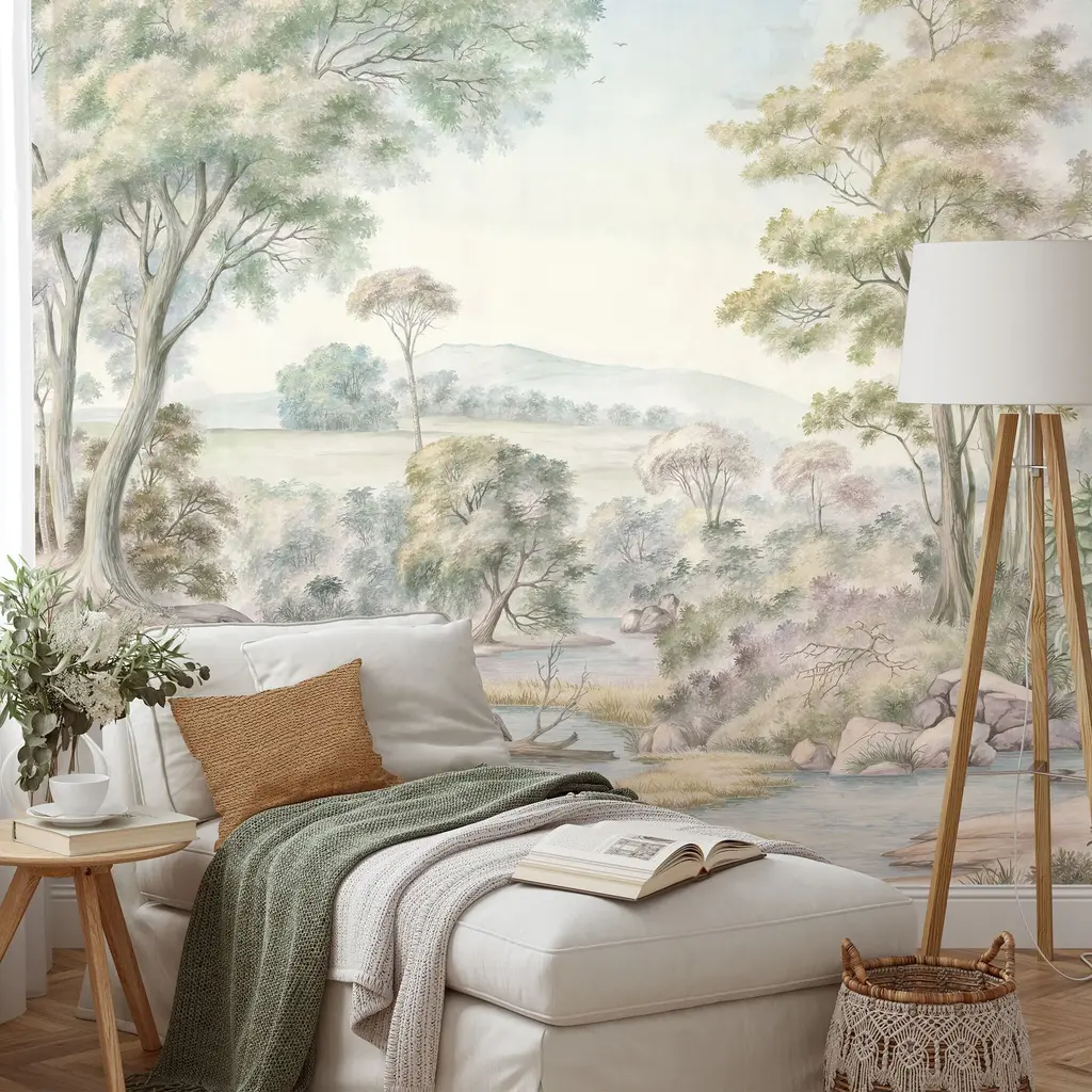 A romantic country landscape embellished by mountain views and babbling streams. The subtle nature of watercolor paintings makes the combination of scene and style a romantic masterpiece. These soft colors move themselves to the background while also echoing an inviting aura of charm and elegance. Transport yourself to the rural countryside where scenic views await. To purchase a sample of this mural, please visit our Wall Mural Sample listing. Ships In 5-6 Weeks Ships In 5-6 Weeks Ships In 5-6 Weeks Ships In 5-6 Weeks Ships In 5-6 Weeks Ships In 5-6 Weeks Ships In 5-6 Weeks Ships In 5-6 Weeks Ships In 5-6 Weeks Ships In 5-6 Weeks Design height is 102" Covers 30 sq. ft. per panel Made to order This image is for illustrative purposes only. The colors shown are accurate within the constraints of lighting, photography, and the color accuracy of your screen.