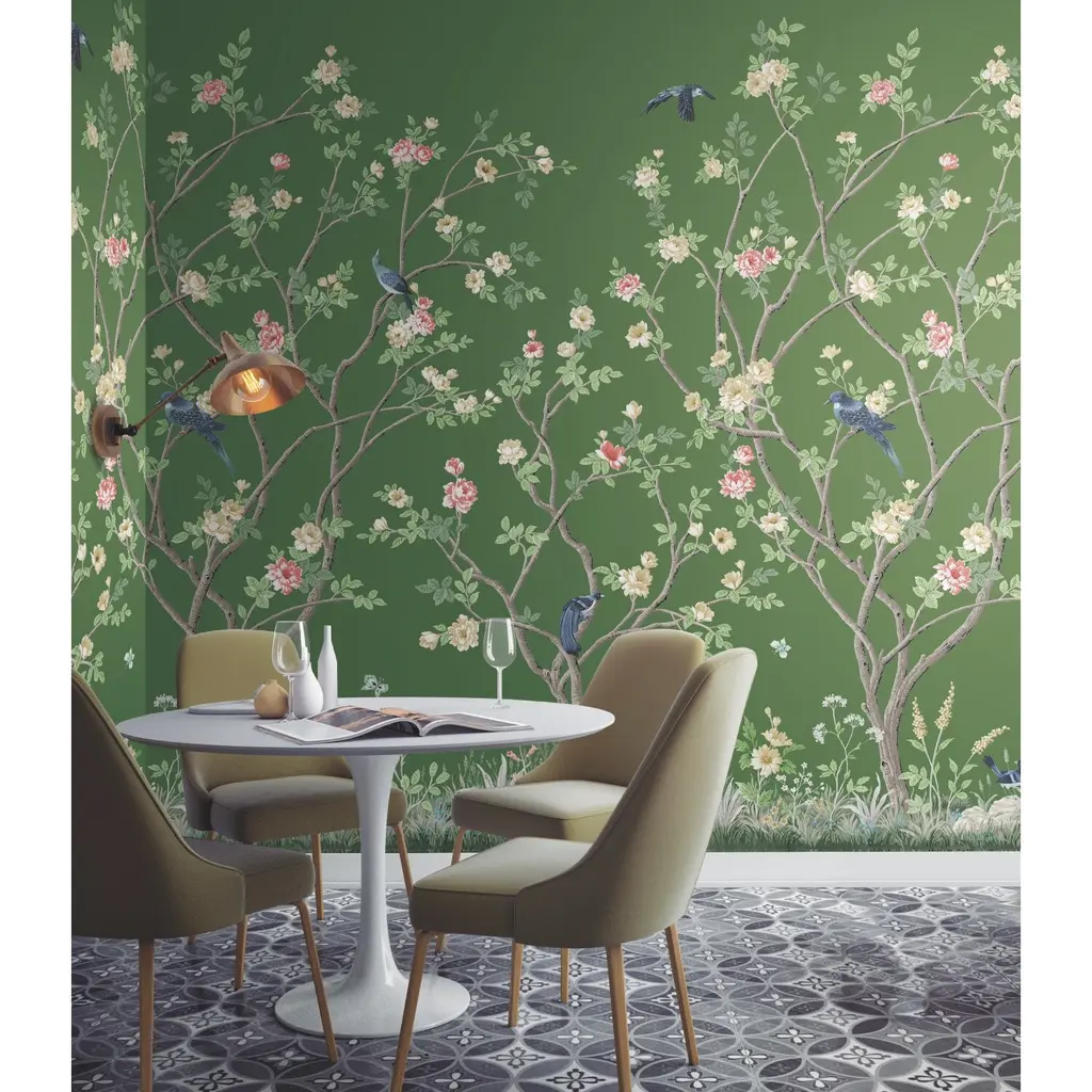 Asian motifs and Japanese gardens define the timeless beauty of the Lingering Garden Mural, shown here in verdant green with white, blue and pink accents. This Lingering Garden Wall Mural contains 2 panels that each measure 33.25-in wide, measuring approximately 5.5-ft wide by 10.2-ft tall when assembled. The distinction of timeless style. Unpasted non woven material. No repeat, random match. Washable and strippable. 33.25-in by 10.2-ft long roll. Covers 2 panels - measures 5.5-ft wide by 10.2-ft tall when assembled.