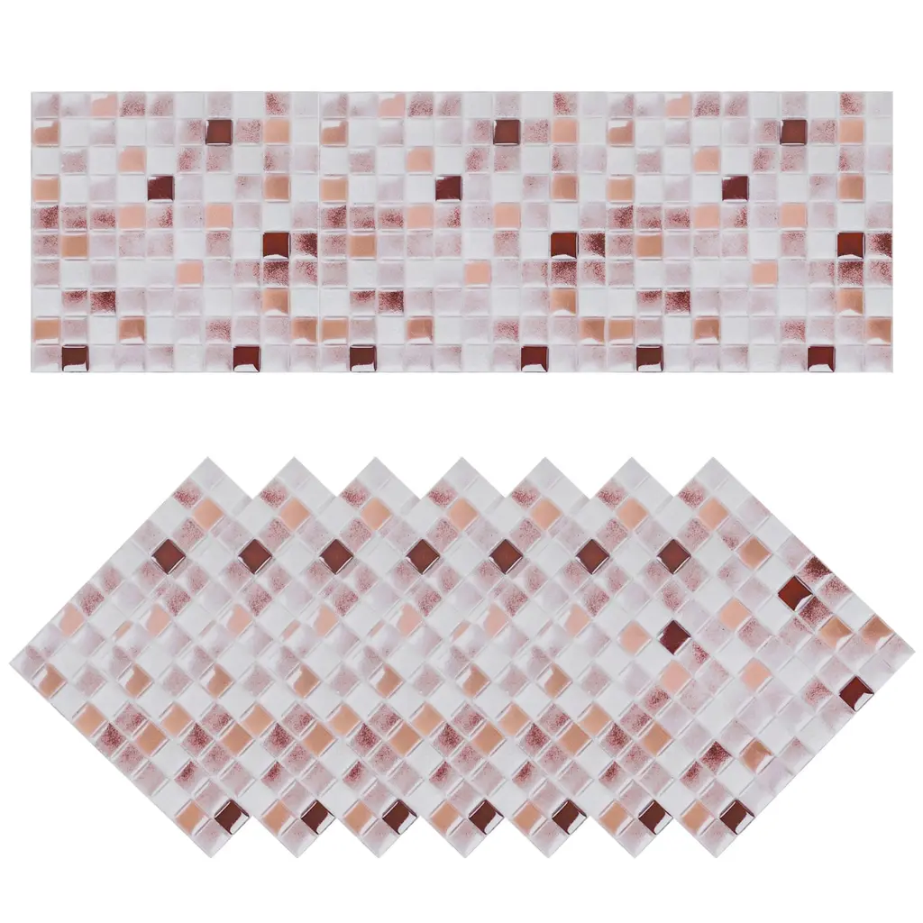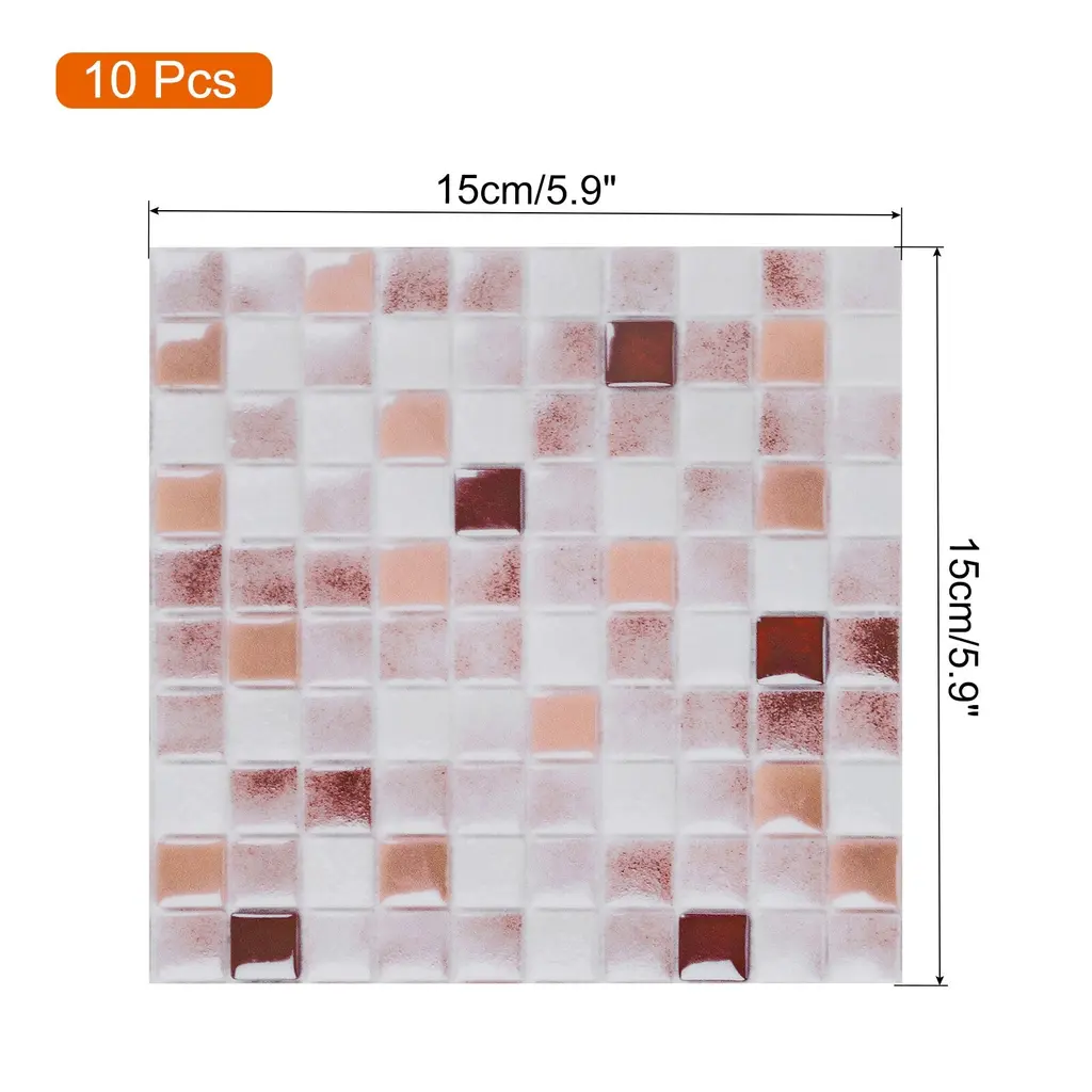 What is this?These bright wall mosaic tile stickers are versatile and can be used in various areas of your home, such as the kitchen, bathroom, living room, bedroom, office, or any other space where you want to add a decorative and stylish touch.What will I get?The wall mosaic tile stickers, we provide here, is in the size of:Each Sheet Size: 15 x 15cm/5.9 x 5.9 inch (L*W)Type: Self-AdhesiveMaterial: PVC Bright FilmColor: Multicolor MosaicIn the package of: 1 Set x Mosaic Tile Stickers, 10pcs in totalAre there any advantages of the product?Our bathroom or kitchen tile stickers are waterproof and heat-resistant, and have a strong back adhesive, you can stick it to most types of tiles or any flat surface, such as walls, glass, and tables, and worry about falling off.With their smooth surface and never fade the color of these mosaics, these tile stickers are easy to clean and maintain. Simply wipe them down with a damp cloth to remove any dirt.How to use it?Steps of installation: 1. Clean the wall or object surface; 2. Position the place where you want to paste it; 3. Tear off the adhesive protective film of the mosaic sticker and paste it at the marked location.What should I notice?These tile stickers work best on smooth, flat surfaces. Avoid applying them on textured walls or surfaces, as it may affect the overall appearance and adhesion.