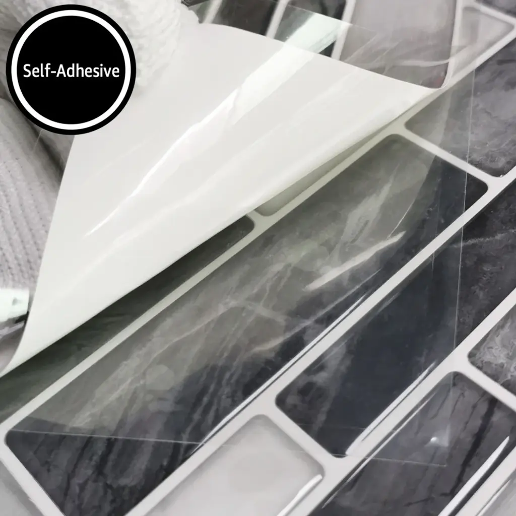 Peel and Stick Tile Backsplash10 Sheets premium self-adhesive tiles, 11.8" X 11.8" eachUpgraded strong back glue, especially designed for kitchen, shower and fireplaceSome non-raised surface, such as cement wall, plywood wall, gypsum wall, textured walls can be appliedThickened top gel giving a better 3-dimensional effect than normal peel & stick tileJust peel and stick, no grout, no glue, no special tools and no messEasy DIY peel and stick tile is made of an adhesive substrate topped with a gel component called exposy resin, the embossed 3d exposy resin offers stunning visual impact.The tiles are thin and light, they can be installed in minutes over a clean and sleek surface without any mess or specialized tools, and never crack with time. This kind of self-adhesive wall tile is also an economic wall covering material.Surface RequirementThe tile need to be installed over clean and sleek surface. Please note that rough surfaces such as porous wood, embossed ceramic tiles or textured wallpaper are not suitable to install; NOT all the latex/repainted walls can be installed directly, for latex or repainted wall, the 3M Spray Adhesive is recommended.Tiles should not directly contact with flames, steam or submerse in water. Do not install tiles less than 16 inches away from the top of stove.If you want to remove the tile, you could use a hair dryer to warm up the adhesive and pull softly starting with the corners.Then use a cleaning product to remove the excess glue left by the peel and stick tiles Especially designedDesigned for Kitchen and Bathroom: resistant to heat of stovetops and humidity of bathrooms.Safe Eco materialsMade of non-toxic materials, anti-fungal, heavy-metal free, formaldehyde free.Peel and StickEasy to install, Just peel and stick! Don''t need any mess or specialized tools. Save your time and money.Easy to cleanIt is easy to maintain, stains can be easily removed with a cleaning product using a sponge.Notes: Please do not use them on where they will be in direct contact with hot water or flames.