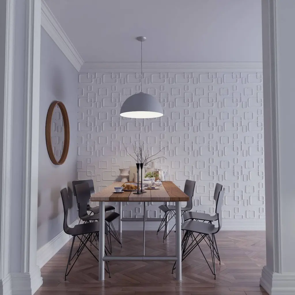 PVC panels are an economical substitute for more pricey wallpaper or traditional wall-covering materials. Our panels are durable, offering a lifetime of beauty. With so many design applications and pattern styles available, every home decor can be elevated with these unique, distinctive panels. For a high-end upgrade to your space, it's as easy as 1,2,3, simply layout the pattern for your intended space, install with construction adhesive and nails and then paint. Because the wall panels are PVC, they are waterproof and not easily dented. Put them inside or outside, just attach to any flat surface.1 Pack Covers 0.98 Sq. Ft.10 Pack Covers 9.79 Sq. Ft.20 Pack Covers 19.59 Sq. Ft.50 Pack Covers 48.96 Sq. Ft.Perfect for both interior and exterior, and residential and commercial applicationsPrecision fit, lightweight, and easy to cut means an easy installationFactory primed and ready for paint or faux finishCreate a 3D raised effect for lessDurable PVC that's waterproof and not easily dentedAttaches quickly with adhesive and nails