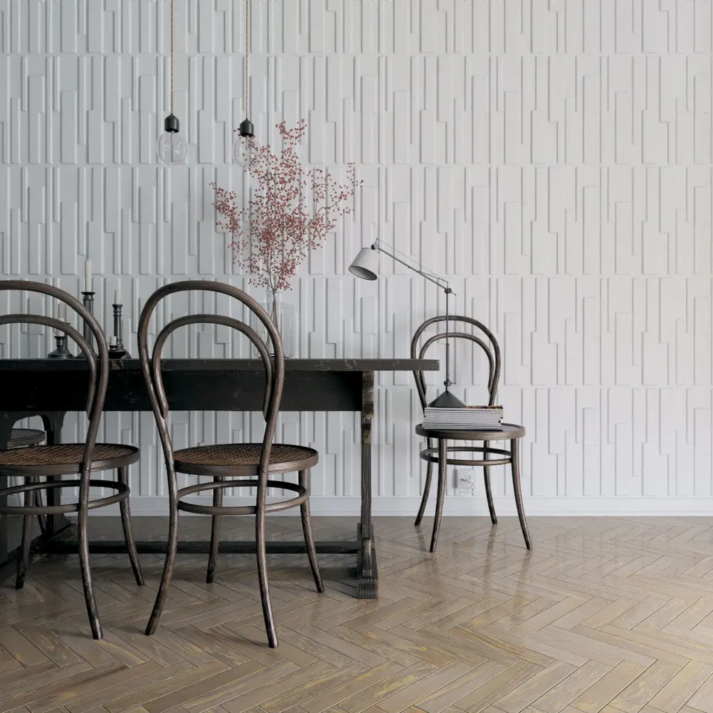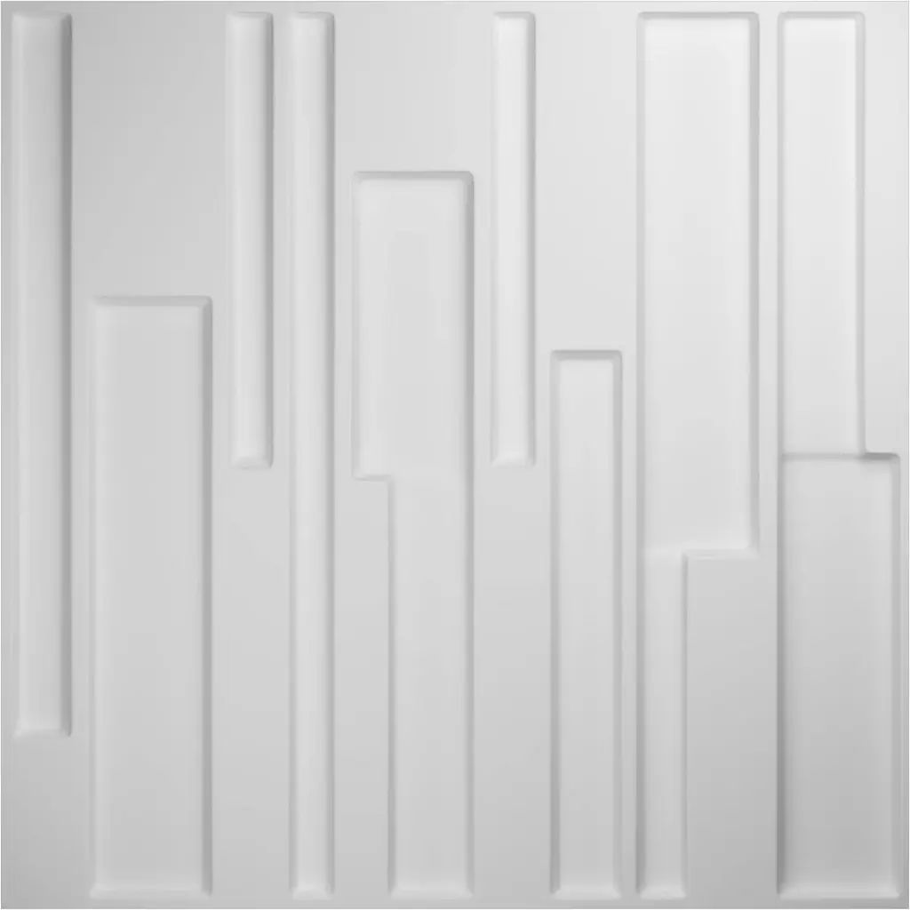 PVC panels are an economical substitute for more pricey wallpaper or traditional wall-covering materials. Our panels are durable, offering a lifetime of beauty. With so many design applications and pattern styles available, every home decor can be elevated with these unique, distinctive panels. For a high-end upgrade to your space, it's as easy as 1,2,3, simply layout the pattern for your intended space, install with construction adhesive and nails and then paint. Because the wall panels are PVC, they are waterproof and not easily dented. Put them inside or outside, just attach to any flat surface.1 Pack Covers 0.98 Sq. Ft.10 Pack Covers 9.79 Sq. Ft.20 Pack Covers 19.59 Sq. Ft.50 Pack Covers 48.96 Sq. Ft.Perfect for both interior and exterior, and residential and commercial applicationsPrecision fit, lightweight, and easy to cut means an easy installationFactory primed and ready for paint or faux finishCreate a 3D raised effect for lessDurable PVC that's waterproof and not easily dentedAttaches quickly with adhesive and nails