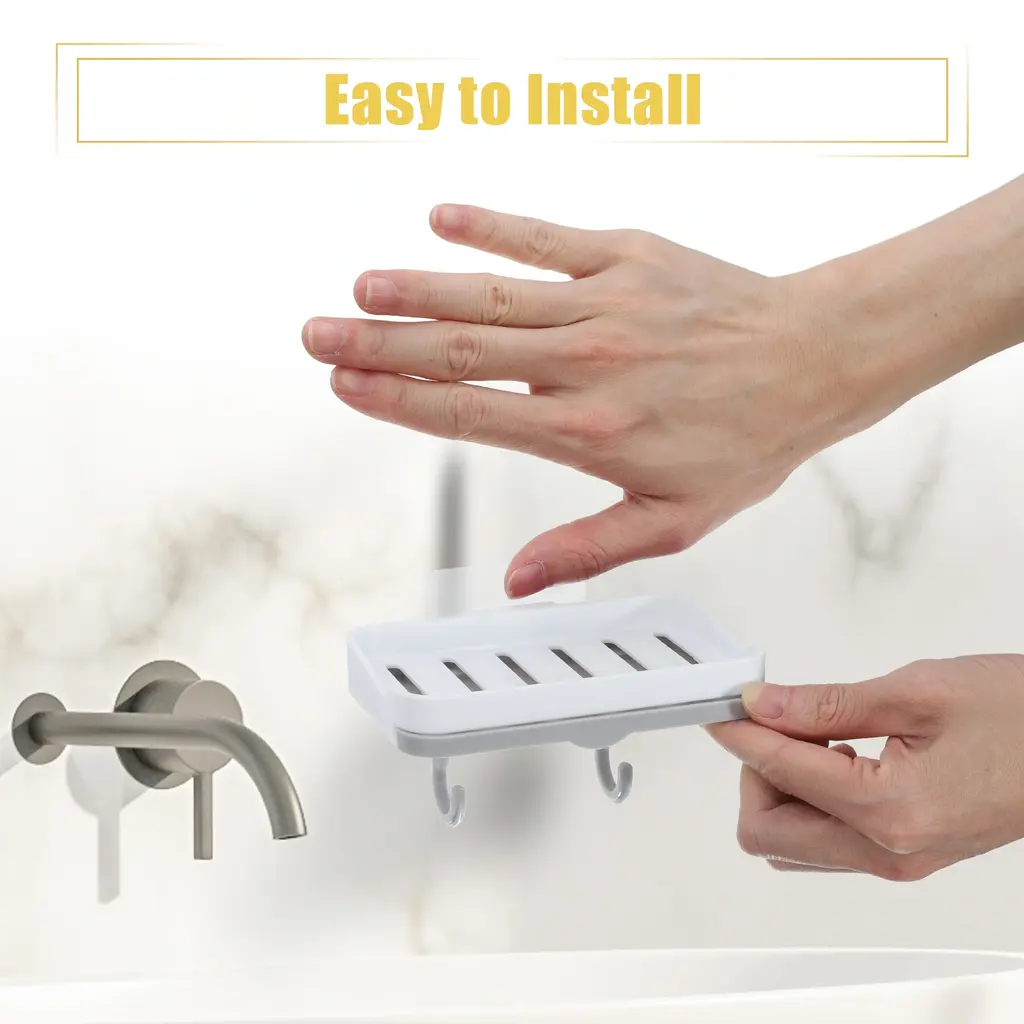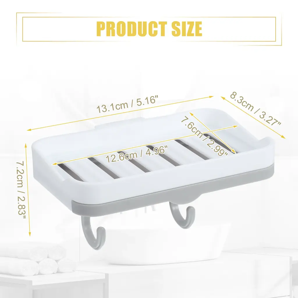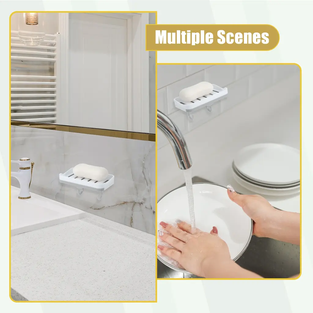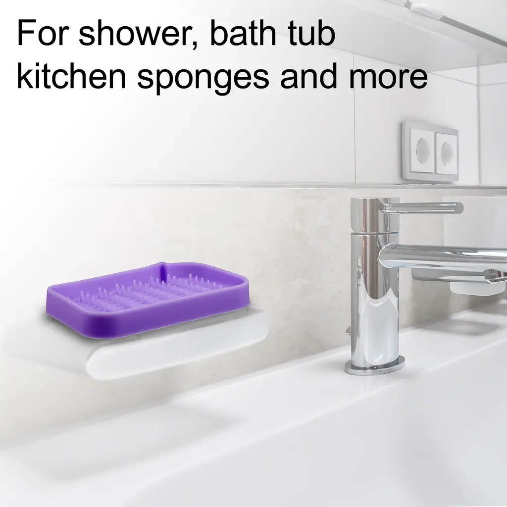 Features:Soap Boxs are also ventilated and breathable, to stop mushy soap and keep the soap dry and the countertop clean.It's sturdy and easy to clean and dry. Saves time and effort.These soap trays are mainly used at home for showers, bathtubs, kitchen sponges, cleaning balls, shavers, shampoo, shower gel, hair clips, earrings, and other small items. They work good in the shower, bathtub, kitchen, countertop and more.Please Note:Please allow slight measuring deviation due to manual measurement.The self adhesive paper can only be adsorbed on smooth, non-porous surfaces, such as metal, glass, ceramic tiles, stainless steel, and acrylic. It is not suitable for uneven ceramic tiles, textured boards, unfinished marble, wallpaper, painted walls, etc.Specifications:Material: PlasticColor: White, PurpleTotal Size: 13.1x8.3x7.2cm / 5.16"x3.27"x2.83"(L*W*H)Soap Dish Size: 12.6x7.6cm / 4.96"x2.99"(L*W)Package List:2 Pcs Soap Dish