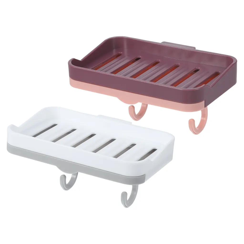 2 Pcs Wall Mounted Soap Dish Soap Box Soap Holder For Bathroom - White, Purple