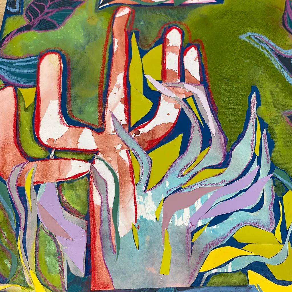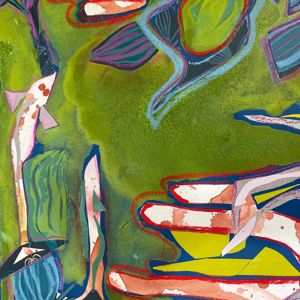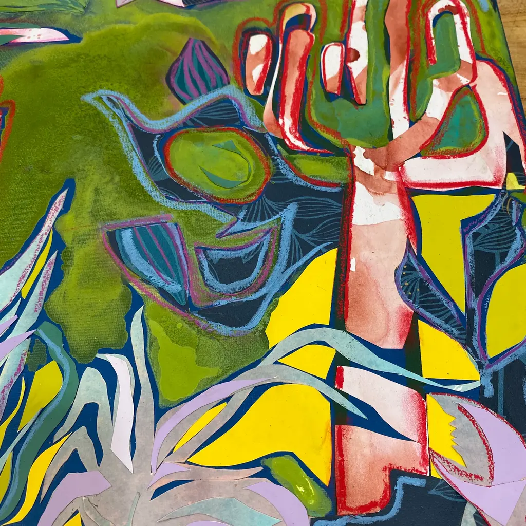 Archival quality print of my second piece in my Underwater Desert Series that I wrapped up last week. Will the seas and deserts ever meet again? Bright, bold layered hand painted papers, wallpaper cuttings from Cole &Son and oil pastel in every playful shade on the spectrum.