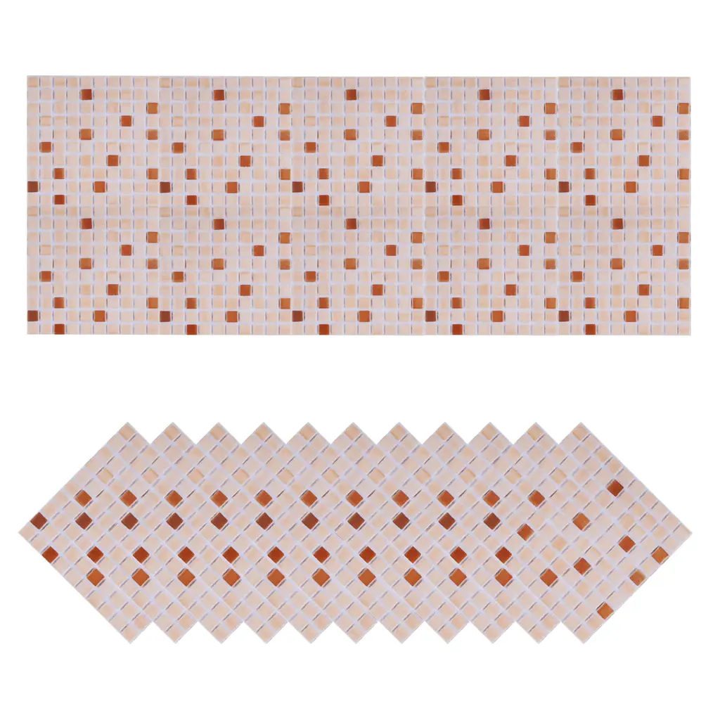 What is this?These bright wall mosaic tile stickers are versatile and can be used in various areas of your home, such as the kitchen, bathroom, living room, bedroom, office, or any other space where you want to add a decorative and stylish touch.What will I get?The wall mosaic tile stickers, we provide here, is in the size of:Each Sheet Size: 10 x 10cm/3.9 x 3.9 inch (L*W)Type: Self-AdhesiveMaterial: PVC Bright FilmColor: Multicolor MosaicIn the package of: 2 Set x Mosaic Tile Stickers, 20pcs in totalAre there any advantages of the product?Our bathroom or kitchen tile stickers are waterproof and heat-resistant, and have a strong back adhesive, you can stick it to most types of tiles or any flat surface, such as walls, glass, and tables, and worry about falling off.With their smooth surface and never fade the color of these mosaics, these tile stickers are easy to clean and maintain. Simply wipe them down with a damp cloth to remove any dirt.How to use it?Steps of installation: 1. Clean the wall or object surface; 2. Position the place where you want to paste it; 3. Tear off the adhesive protective film of the mosaic sticker and paste it at the marked location.What should I notice?These tile stickers work best on smooth, flat surfaces. Avoid applying them on textured walls or surfaces, as it may affect the overall appearance and adhesion.
