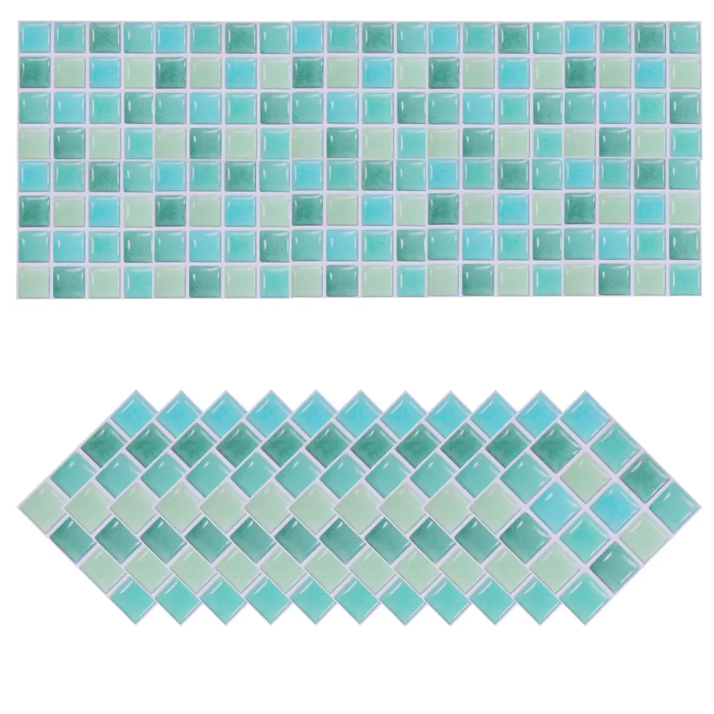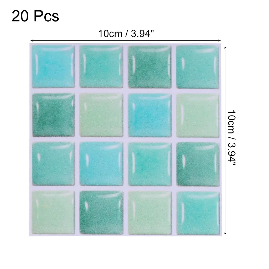 What is this?These bright wall mosaic tile stickers are versatile and can be used in various areas of your home, such as the kitchen, bathroom, living room, bedroom, office, or any other space where you want to add a decorative and stylish touch.What will I get?The wall mosaic tile stickers, we provide here, is in the size of:Each Sheet Size: 10 x 10cm/3.94 x 3.94 inch (L*W)Type: Self-AdhesiveMaterial: PVC Bright FilmColor: Multicolor MosaicIn the package of: 2 Set x Mosaic Tile Stickers, 20pcs in totalAre there any advantages of the product?Our bathroom or kitchen tile stickers are waterproof and heat-resistant, and have a strong back adhesive, you can stick it to most types of tiles or any flat surface, such as walls, glass, and tables, and worry about falling off.With their smooth surface and never fade the color of these mosaics, these tile stickers are easy to clean and maintain. Simply wipe them down with a damp cloth to remove any dirt.How to use it?Steps of installation: 1. Clean the wall or object surface; 2. Position the place where you want to paste it; 3. Tear off the adhesive protective film of the mosaic sticker and paste it at the marked location.What should I notice?These tile stickers work best on smooth, flat surfaces. Avoid applying them on textured walls or surfaces, as it may affect the overall appearance and adhesion.
