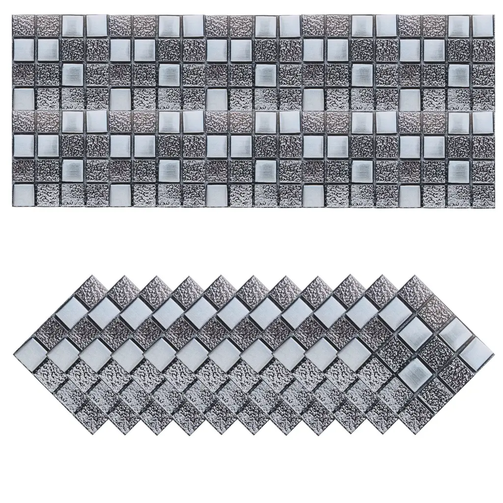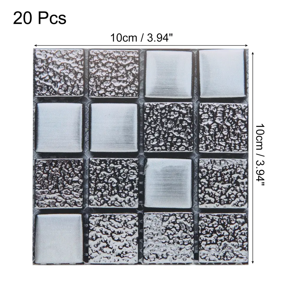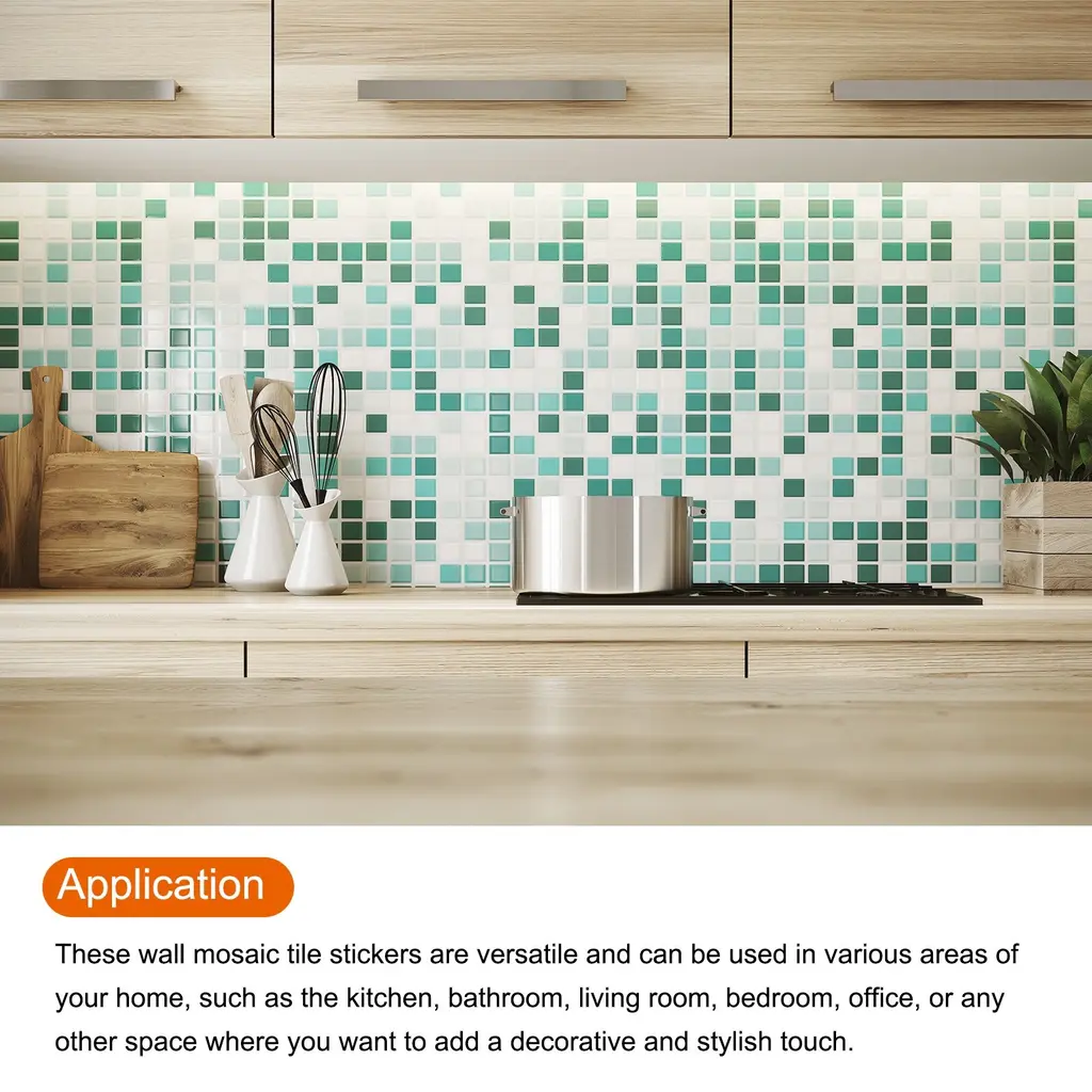 What is this?These bright wall mosaic tile stickers are versatile and can be used in various areas of your home, such as the kitchen, bathroom, living room, bedroom, office, or any other space where you want to add a decorative and stylish touch.What will I get?The wall mosaic tile stickers, we provide here, is in the size of:Each Sheet Size: 10 x 10cm/3.94 x 3.94 inch (L*W)Type: Self-AdhesiveMaterial: PVC Bright FilmColor: Multicolor MosaicIn the package of: 2 Set x Mosaic Tile Stickers, 20pcs in totalAre there any advantages of the product?Our bathroom or kitchen tile stickers are waterproof and heat-resistant, and have a strong back adhesive, you can stick it to most types of tiles or any flat surface, such as walls, glass, and tables, and worry about falling off.With their smooth surface and never fade the color of these mosaics, these tile stickers are easy to clean and maintain. Simply wipe them down with a damp cloth to remove any dirt.How to use it?Steps of installation: 1. Clean the wall or object surface; 2. Position the place where you want to paste it; 3. Tear off the adhesive protective film of the mosaic sticker and paste it at the marked location.What should I notice?These tile stickers work best on smooth, flat surfaces. Avoid applying them on textured walls or surfaces, as it may affect the overall appearance and adhesion.