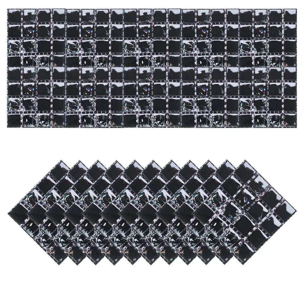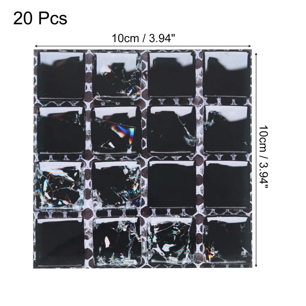 What is this?These bright wall mosaic tile stickers are versatile and can be used in various areas of your home, such as the kitchen, bathroom, living room, bedroom, office, or any other space where you want to add a decorative and stylish touch.What will I get?The wall mosaic tile stickers, we provide here, is in the size of:Each Sheet Size: 10 x 10cm/3.94 x 3.94 inch (L*W)Type: Self-AdhesiveMaterial: PVC Bright FilmColor: Multicolor MosaicIn the package of: 2 Set x Mosaic Tile Stickers, 20pcs in totalAre there any advantages of the product?Our bathroom or kitchen tile stickers are waterproof and heat-resistant, and have a strong back adhesive, you can stick it to most types of tiles or any flat surface, such as walls, glass, and tables, and worry about falling off.With their smooth surface and never fade the color of these mosaics, these tile stickers are easy to clean and maintain. Simply wipe them down with a damp cloth to remove any dirt.How to use it?Steps of installation: 1. Clean the wall or object surface; 2. Position the place where you want to paste it; 3. Tear off the adhesive protective film of the mosaic sticker and paste it at the marked location.What should I notice?These tile stickers work best on smooth, flat surfaces. Avoid applying them on textured walls or surfaces, as it may affect the overall appearance and adhesion.