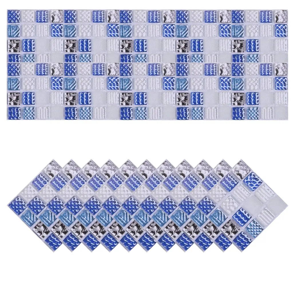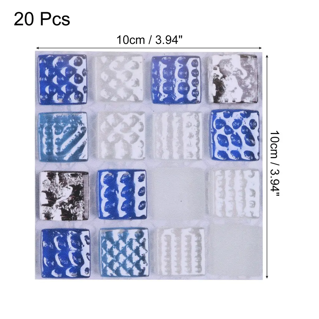 What is this?These bright wall mosaic tile stickers are versatile and can be used in various areas of your home, such as the kitchen, bathroom, living room, bedroom, office, or any other space where you want to add a decorative and stylish touch.What will I get?The wall mosaic tile stickers, we provide here, is in the size of:Each Sheet Size: 10 x 10cm/3.94 x 3.94 inch (L*W)Type: Self-AdhesiveMaterial: PVC Bright FilmColor: Multicolor MosaicIn the package of: 2 Set x Mosaic Tile Stickers, 20pcs in totalAre there any advantages of the product?Our bathroom or kitchen tile stickers are waterproof and heat-resistant, and have a strong back adhesive, you can stick it to most types of tiles or any flat surface, such as walls, glass, and tables, and worry about falling off.With their smooth surface and never fade the color of these mosaics, these tile stickers are easy to clean and maintain. Simply wipe them down with a damp cloth to remove any dirt.How to use it?Steps of installation: 1. Clean the wall or object surface; 2. Position the place where you want to paste it; 3. Tear off the adhesive protective film of the mosaic sticker and paste it at the marked location.What should I notice?These tile stickers work best on smooth, flat surfaces. Avoid applying them on textured walls or surfaces, as it may affect the overall appearance and adhesion.