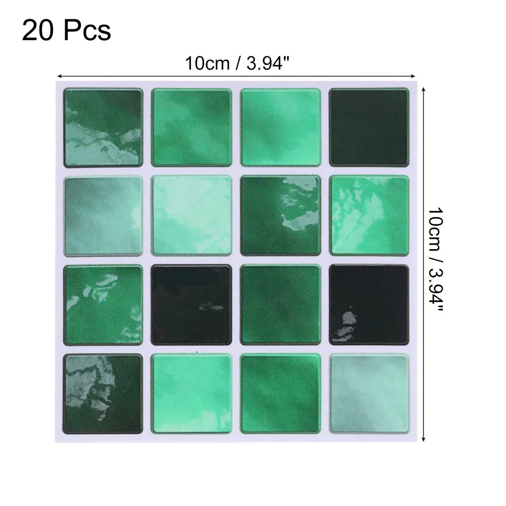 What is this?These bright wall mosaic tile stickers are versatile and can be used in various areas of your home, such as the kitchen, bathroom, living room, bedroom, office, or any other space where you want to add a decorative and stylish touch.What will I get?The wall mosaic tile stickers, we provide here, is in the size of:Each Sheet Size: 10 x 10cm/3.94 x 3.94 inch (L*W)Type: Self-AdhesiveMaterial: PVC Bright FilmColor: Multicolor MosaicIn the package of: 2 Set x Mosaic Tile Stickers, 20pcs in totalAre there any advantages of the product?Our bathroom or kitchen tile stickers are waterproof and heat-resistant, and have a strong back adhesive, you can stick it to most types of tiles or any flat surface, such as walls, glass, and tables, and worry about falling off.With their smooth surface and never fade the color of these mosaics, these tile stickers are easy to clean and maintain. Simply wipe them down with a damp cloth to remove any dirt.How to use it?Steps of installation: 1. Clean the wall or object surface; 2. Position the place where you want to paste it; 3. Tear off the adhesive protective film of the mosaic sticker and paste it at the marked location.What should I notice?These tile stickers work best on smooth, flat surfaces. Avoid applying them on textured walls or surfaces, as it may affect the overall appearance and adhesion.