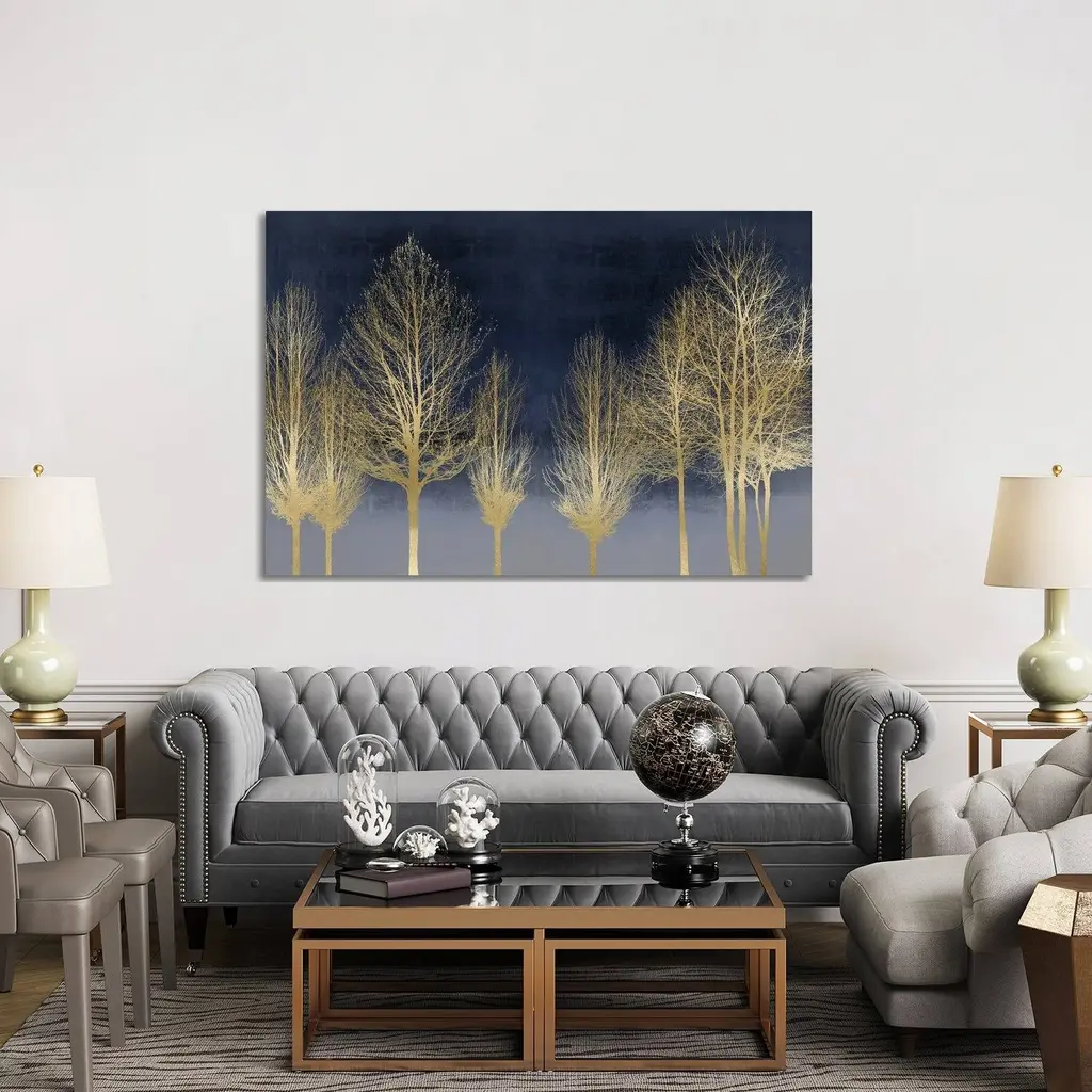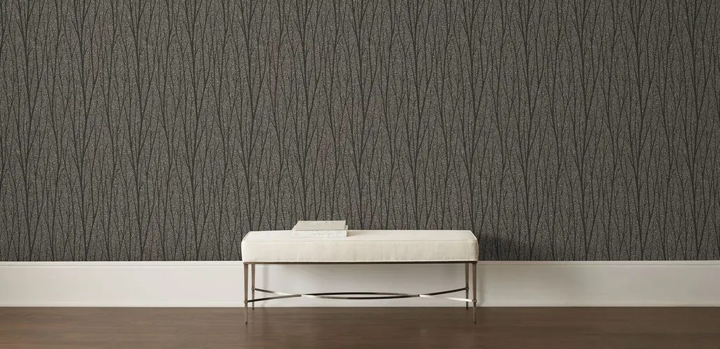 An intricate speckled background uses negative space to create an ethereal effect, while shimmering details give any wall a glamorous lean. This wallpaper is designed with raised ink and mimics a forest of trees.