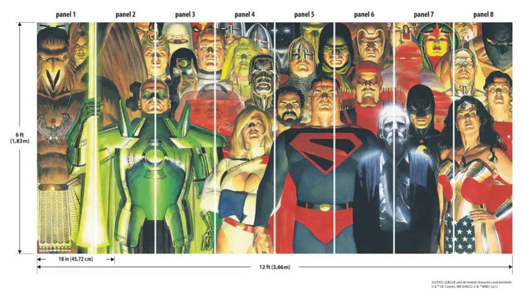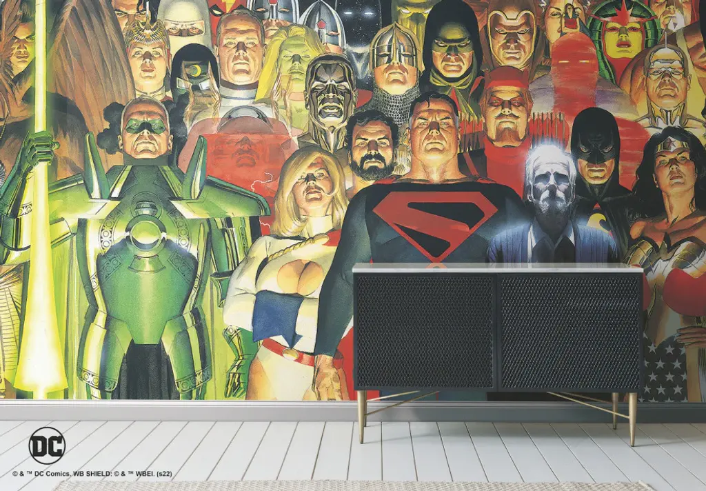 The incredible style of comic artist Alex Ross brings the alternate universe and Legion of Super-Heroes of the 30th and 31st centuries to New Earth in a decor invasion that''s as easy on walls as it is on the eye. This full-facing dramatic RoomMates removable mural will captivate visitors from any multiverse and brings fandom front and center. This modern removable peel and stick mural is an easy fit in dorm rooms, bedrooms, gaming spaces, and any playroom or family room. RoomMates Peel and Stick high-quality removable murals create fun, renter-friendly decor with easy application and removal, without leaving any residue or damage to walls, ever.