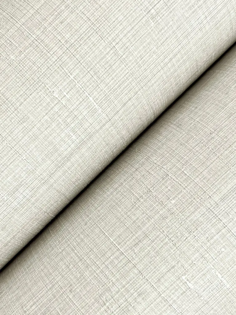 Raw silk weave inspires the luminous warmth in Amari''s perfect balance of luxurious silk and the twisted texture of hand-loomed naturals, shown here in platinum silver. This Amari Wallpaper measures approximately 27 inches wide by 27 feet long, measuring approximately 60.8 square feet per roll. The distinction of timeless style. Unpasted vinyl non woven material. No repeat, random match. Scrubbable and strippable. 27-in by 27-ft long roll. Covers about 60.8 square feet