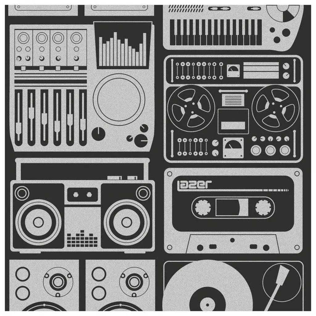 Analog Nights Designer Screen Printed Wallpaper In Thunder 'Silver On Charcoal'