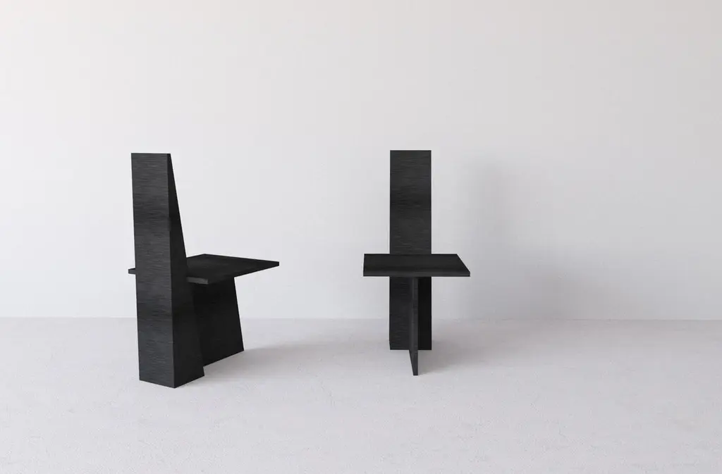 Anchor Chair by Morgane AvéusDimensions: D 45 x W 55 x H 95 cm.Materials: Stained oak.Anchor chair has a very graphic alure combining sleek lines and strong angles.It works well on its own as an accent chair and can also easily be multiplied around a table due to its pure geometry and clean look, especially when viewed from the back.Morgane Avéus is a French designer and Art Director who designs concept-driven furniture, lighting and spaces. Her work is the result of deep research in iconic and symbolic references that combines the different areas of design and art through a multidisciplinary approach.Morgane Avéus designs collectible furniture and lighting using a neutral palette and noble materials to create statement pieces with strong personality and permanence. Her designs are an ode to defining moments of the past with a narrative-driven aesthetic.Morgane Avéus’ designs and installations have been showcased across the globe at leading design fairs including Salone del Mobile and London Festival and featured extensively in publications such as Wallpaper, Designboom, Sight Unseen, Elle Decoration, Architectural Digest and more.