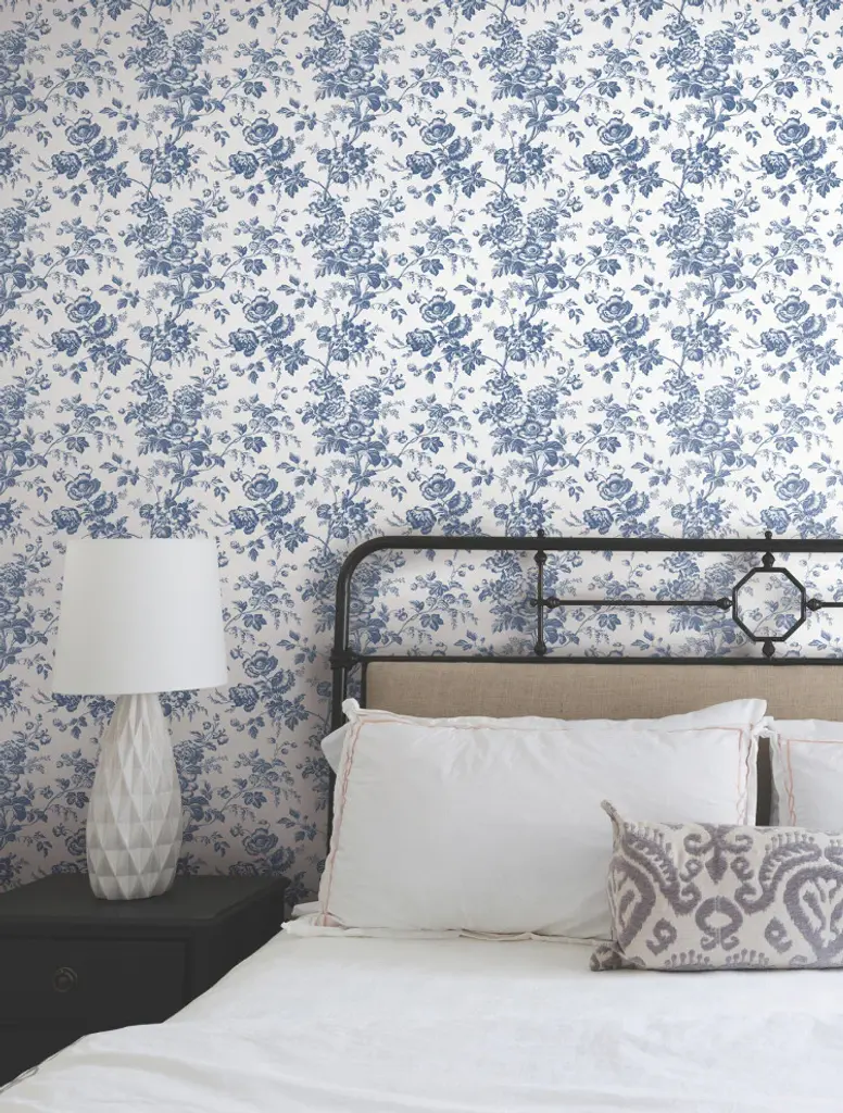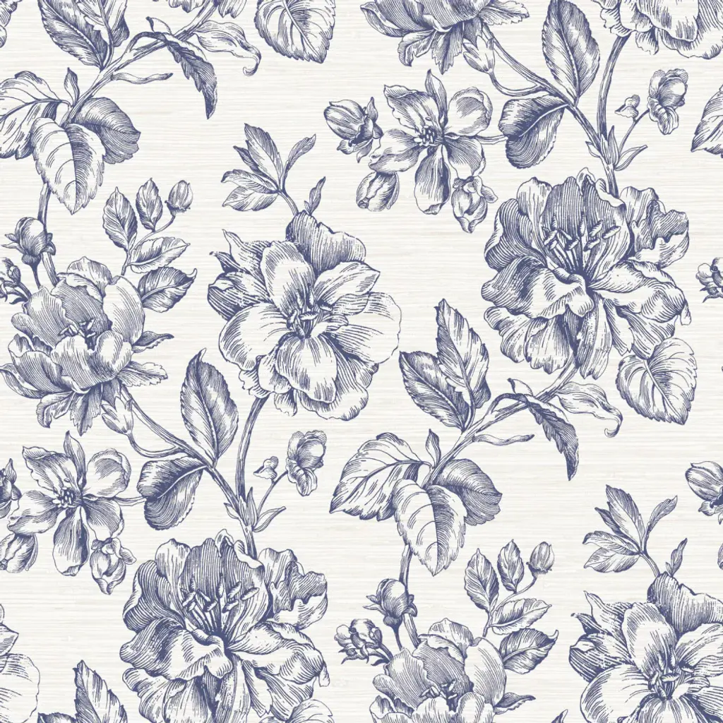 Incredibly artistic detailing in rich blue ink makes Anemone Toile a perfect example of timeless floral trail elegance. This Anemone Toile Wallpaper measures approximately 20.5 inches wide by 33 feet long, measuring approximately 56.4 square feet per roll. The quintessential design for timeless romance, toile traces its origins to 18th century fabrics. This celebrated motif is explored with a range of classical reproductions and modern reimaginings. Prepasted sure strip material; 20.5-in repeat, straight match; Washable and strippable; 20.5-in by 33-ft long roll; Covers about 56.4 square feet