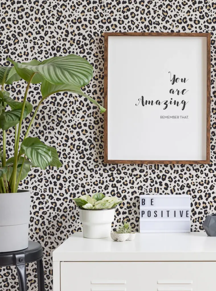 Looking for a wild look for your room? Look no further! Simple Shapes Leopard Print Peel and Stick Vinyl Wallpaper will spice up any wall!This repositionable vinyl wallpaper is designed and made in our studios in New Jersey. The designs are printed onto an adhesive-backed vinyl that can be removed, repositioned, and reused. The wallpaper does not leave residue on your walls and is ideal for DIY room makeovers without the mess and headaches of traditional wallpaper.Size Options:24"w x 60"h24"w x 108"hPattern Repeat Length:every 24"What''s Included:1 sheet of peel-n-stick vinyl wallpaper