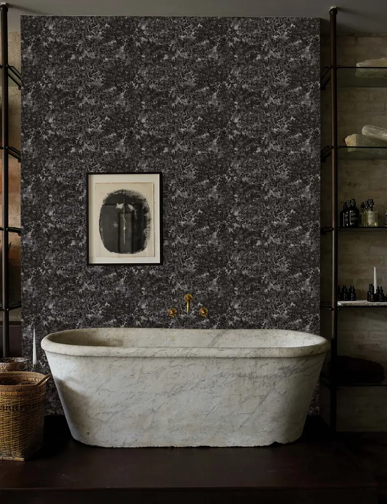 Bring the quiet depth of nature to your space with this botanical toile. Inspired by an antique tapestry, its moody palette and layered detailing strike a timeless note with a distinctly modern edge. From acclaimed designer Jeremiah Brent, this collection of peel and stick wallpapers lets you layer a signature touch into any spacewith easy installation and residue-free removal.