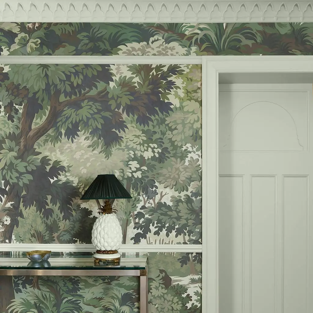 Journey through the arboreal delights of French historical archive prints and 16th century verdure tapestries with ARBOREA; a verdant green mural wallpaper designed to bring a touch of the old world into your home.Our wallpaper is made using Forest Stewardship Council (FSC) certified, purposely grown materials, printed with water-based, environmentally safe inks, is PVC-free and made especially to order, reducing waste.