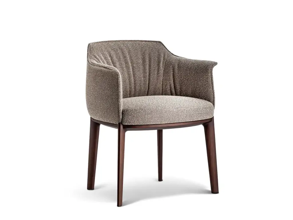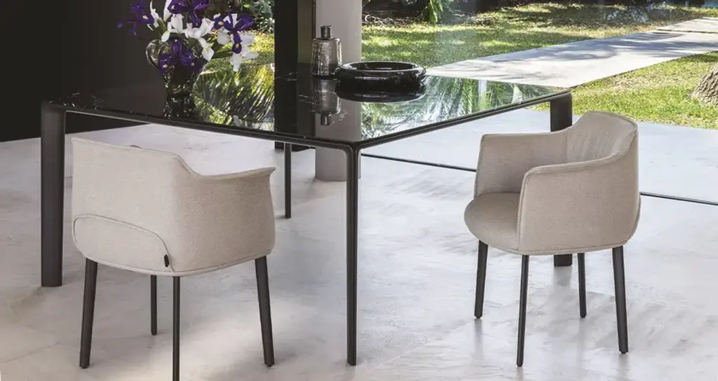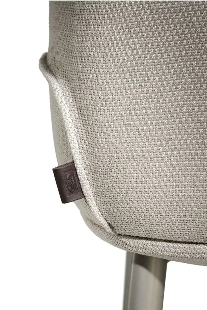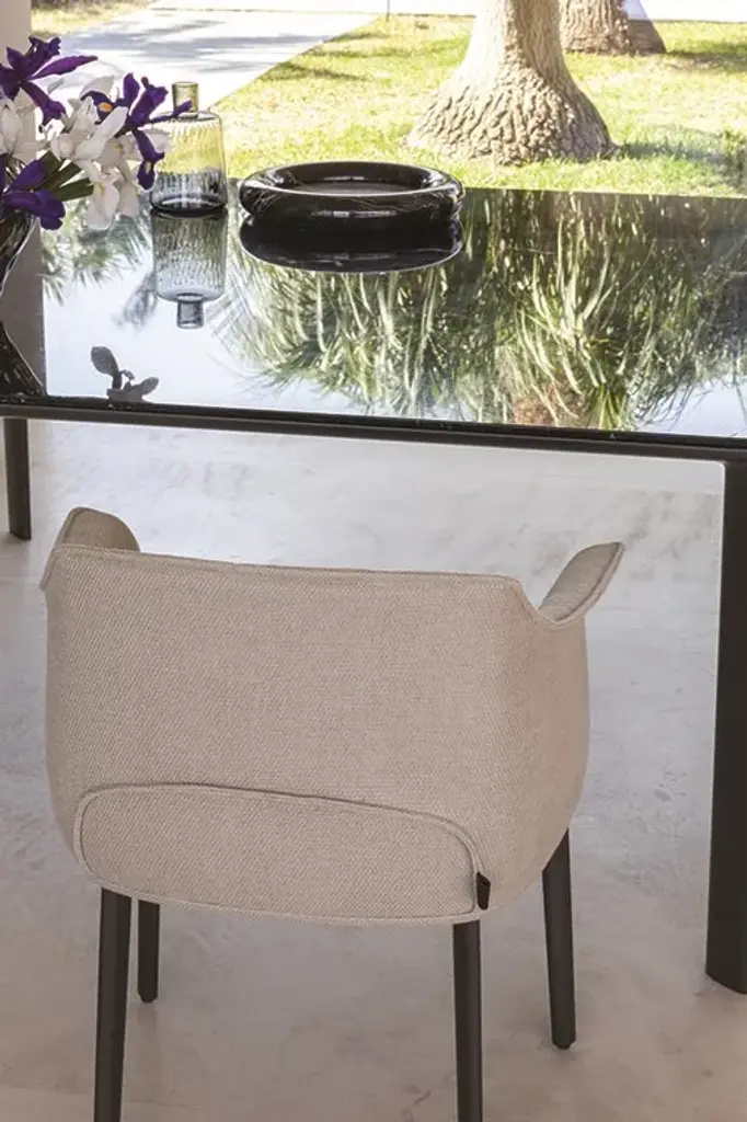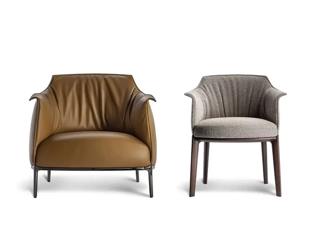 Inspired by his iconic Archibald chair, Wallpaper*Award in the “Best Domestic Design” section in 2009, Jean-Marie Massaud creates another little masterpiece, a dining chair of impeccable elegance. The Archibald dining chair is sculpted, clean and contemporary, softened with a sartorial touch that is evident in every detail, like the sumptuous folds on the inside of the backrest upholstered in leather. Or the understated armrest that resembles a shirt collar that has been left slightly open with a casualness that is both deliberate and undeniably elegant. Or the precious contrast stitching, which discreetly and skilfully underlines the curved line of the back and profiles. The most recent addition to the Archibald collection, which ten years ago arrived on the scene as a contemporary take on the classic English tub chair, the new Archibald dining chair boasts all the comfort of the rest of the collection but has a sleeker, more casual allure that makes it particularly eclectic and perfect for both contemporary spaces and, conversely, more classic interiors. The shell and armrests of the Archibald dining chair are made from moulded rigid polyurethane while the internal padding consists of soft moulded polyurethane and polyester wadding. The frame, also padded in polyurethane foam and wadding, is made from birch plywood. Elastic springs. The 4-legged base is made from solid ash with a Wenge or Moka stain, and has felt pads or a choice of protective guides at the ends of the legs. It can be upholstered in Pelle Frau® leather or fabric. The leather version is embellished with contrast stitching.