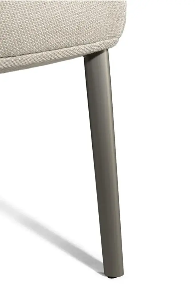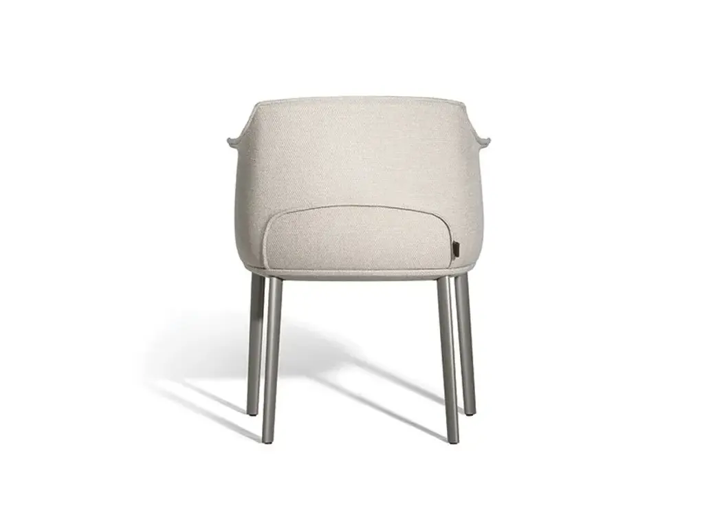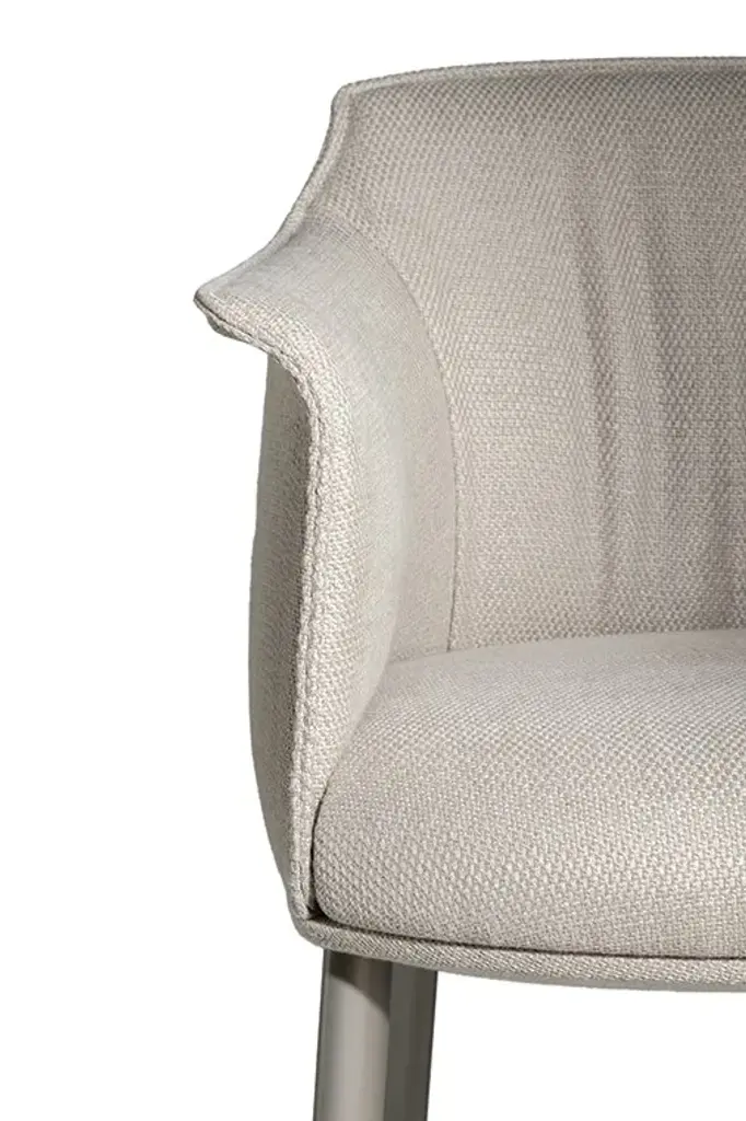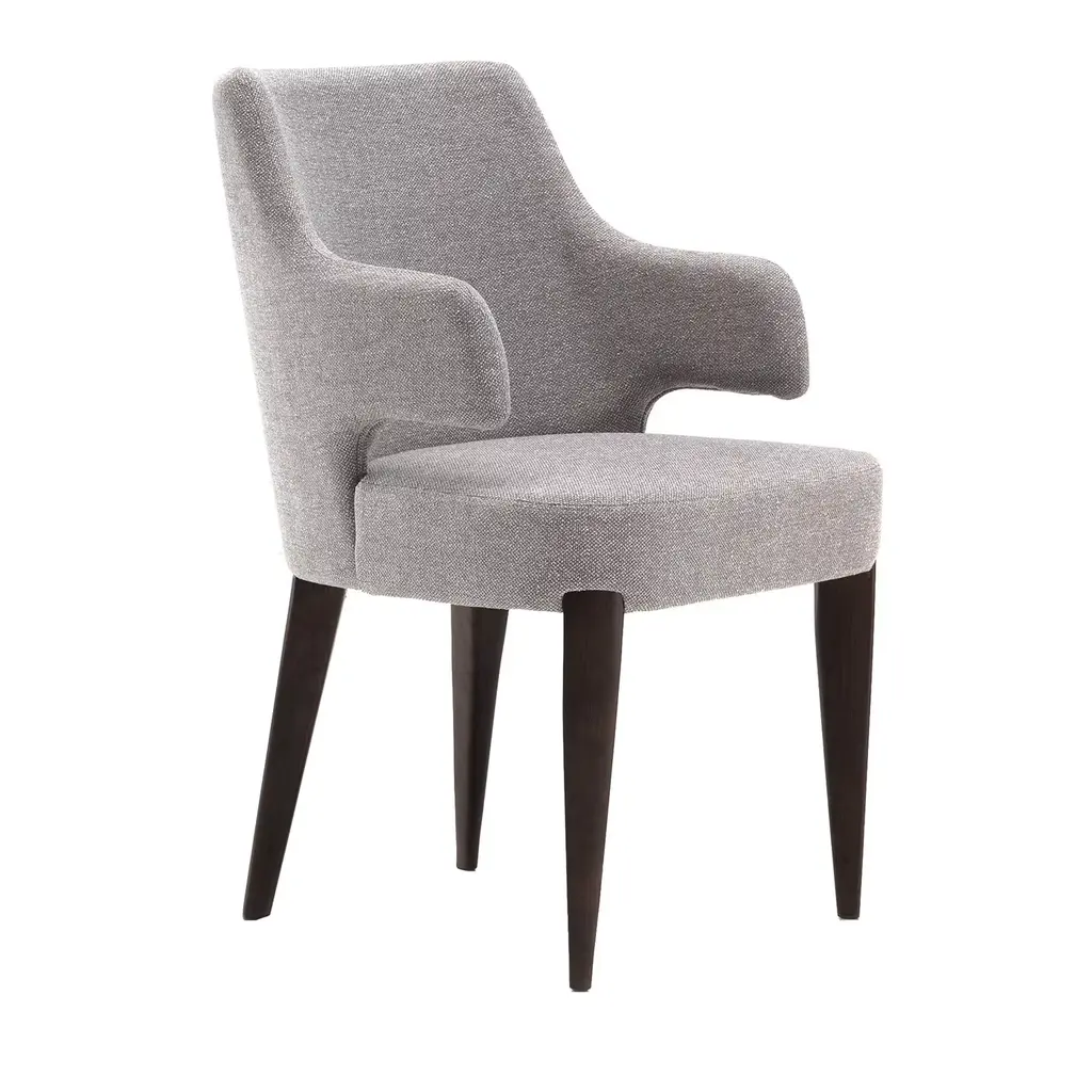 Inspired by his iconic Archibald chair, Wallpaper*Award in the “Best Domestic Design” section in 2009, Jean-Marie Massaud creates another little masterpiece, a dining chair of impeccable elegance. The Archibald dining chair is sculpted, clean and contemporary, softened with a sartorial touch that is evident in every detail, like the sumptuous folds on the inside of the backrest upholstered in leather. Or the understated armrest that resembles a shirt collar that has been left slightly open with a casualness that is both deliberate and undeniably elegant. Or the precious contrast stitching, which discreetly and skilfully underlines the curved line of the back and profiles. The most recent addition to the Archibald collection, which ten years ago arrived on the scene as a contemporary take on the classic English tub chair, the new Archibald dining chair boasts all the comfort of the rest of the collection but has a sleeker, more casual allure that makes it particularly eclectic and perfect for both contemporary spaces and, conversely, more classic interiors. The shell and armrests of the Archibald dining chair are made from moulded rigid polyurethane while the internal padding consists of soft moulded polyurethane and polyester wadding. The frame, also padded in polyurethane foam and wadding, is made from birch plywood. Elastic springs. The 4-legged base is made from solid ash with a Wenge or Moka stain, and has felt pads or a choice of protective guides at the ends of the legs. It can be upholstered in Pelle Frau® leather or fabric. The leather version is embellished with contrast stitching.