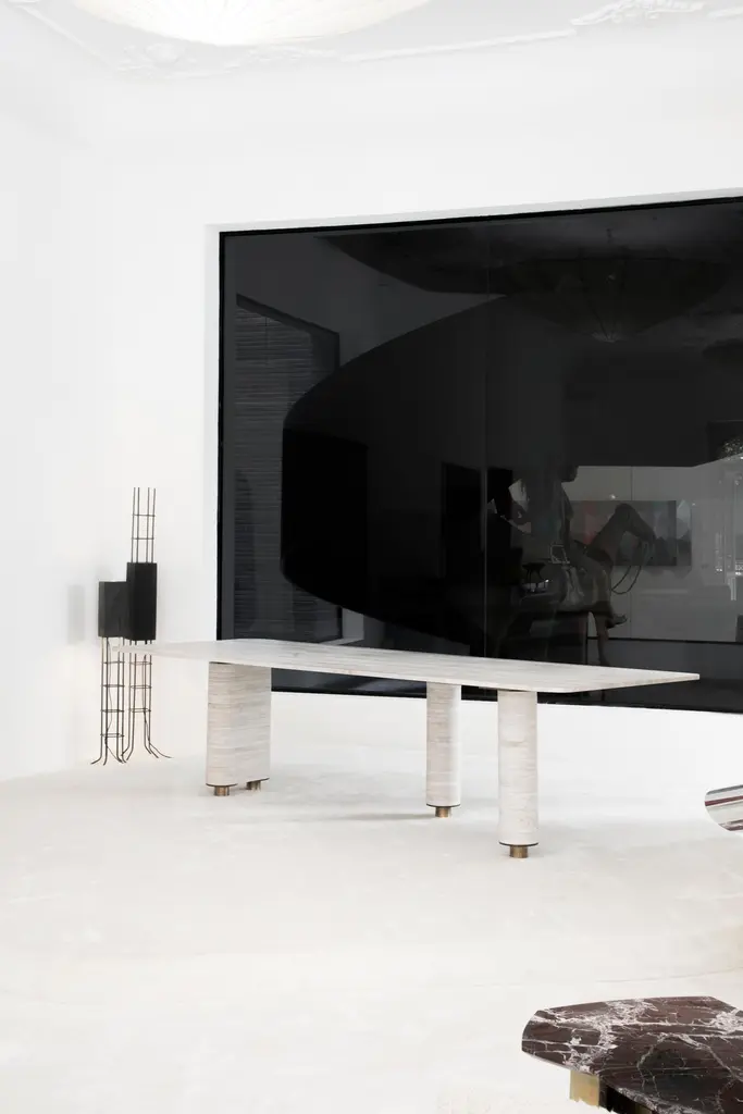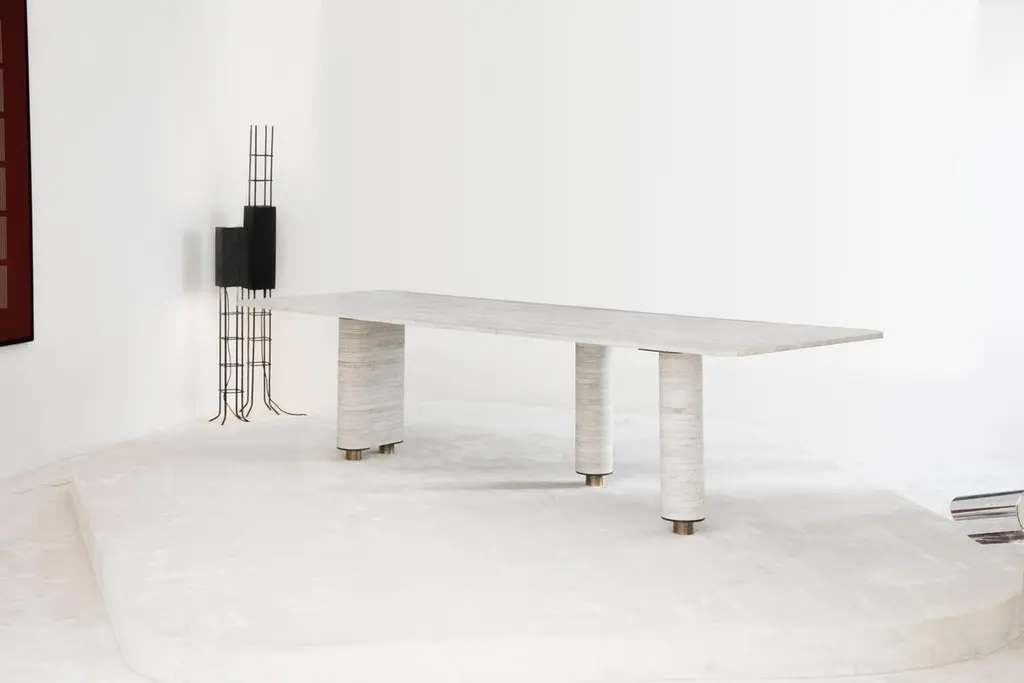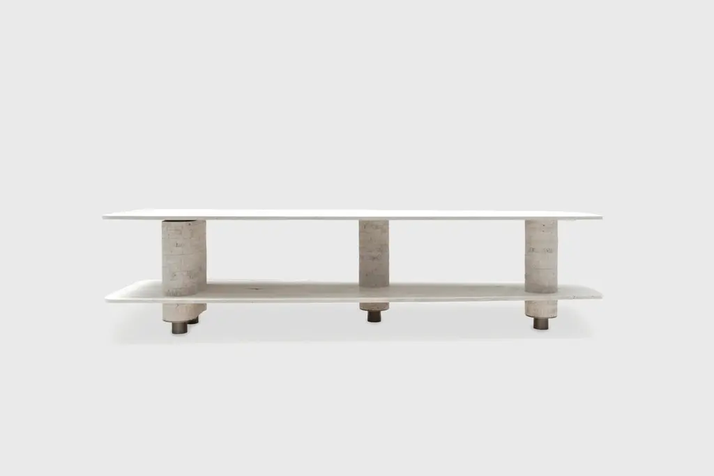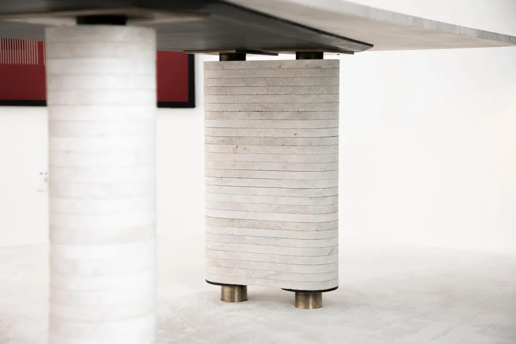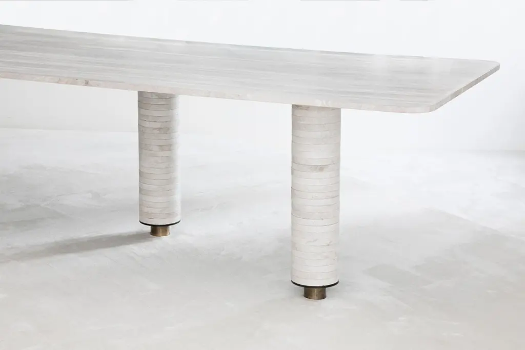 Aro console table by Atra DesignDimensions: D 250 x W 60 x H 45 cmMaterials: Silk Georgette marble top and sculptural base of taj mahal stone rings with brass details.Also available in different stones: Calacatta Viola, Rhino Quartz, Calacata Gold, Taj Mahal.Atra DesignWe are Atra, a furniture brand produced by Atra form a mexico city–based high end production facility that also houses our founder Alexander Díaz Andersson's architecture and design studio.We are inspired by the future, informed by past centuries of woodworking traditions and are designing for the present and many years to come.Our designs are driven by what excites our senses and challenges our creativity, not about the latest trends or the diktat of marketing.We design with a passion for modernism and futurism and our discerning clientele comes to us for our rigorous sense of quality, comfort and uniqueness. atra's style effortlessly demonstrates our carpenter's artistry.Alexander Díaz AnderssonAtra founder Alexander Díaz Andersson was raised in Sweden, studied in Spain before moving to the Yucatán peninsula, where he first started experimenting with furniture. Now located in Mexico City, Díaz Andersson’s furniture, sculptures, interiors, and hospitality projects are defined by a studied balance of chaos and structure, fluidity and function. trained in industrial design, Díaz Andersson combines academic learning with knowledge passed down from experienced artist mentors and the energy of autodidactic exploration. his practice is both intuitive and informed by an understanding of history, process, and materials. Above all, Díaz Andersson’s guiding principle is pleasure. Alexander Díaz Andersson has been featured in Wallpaper Magazine, Architectural Digest, GG, Surface, and Vogue to name a few.