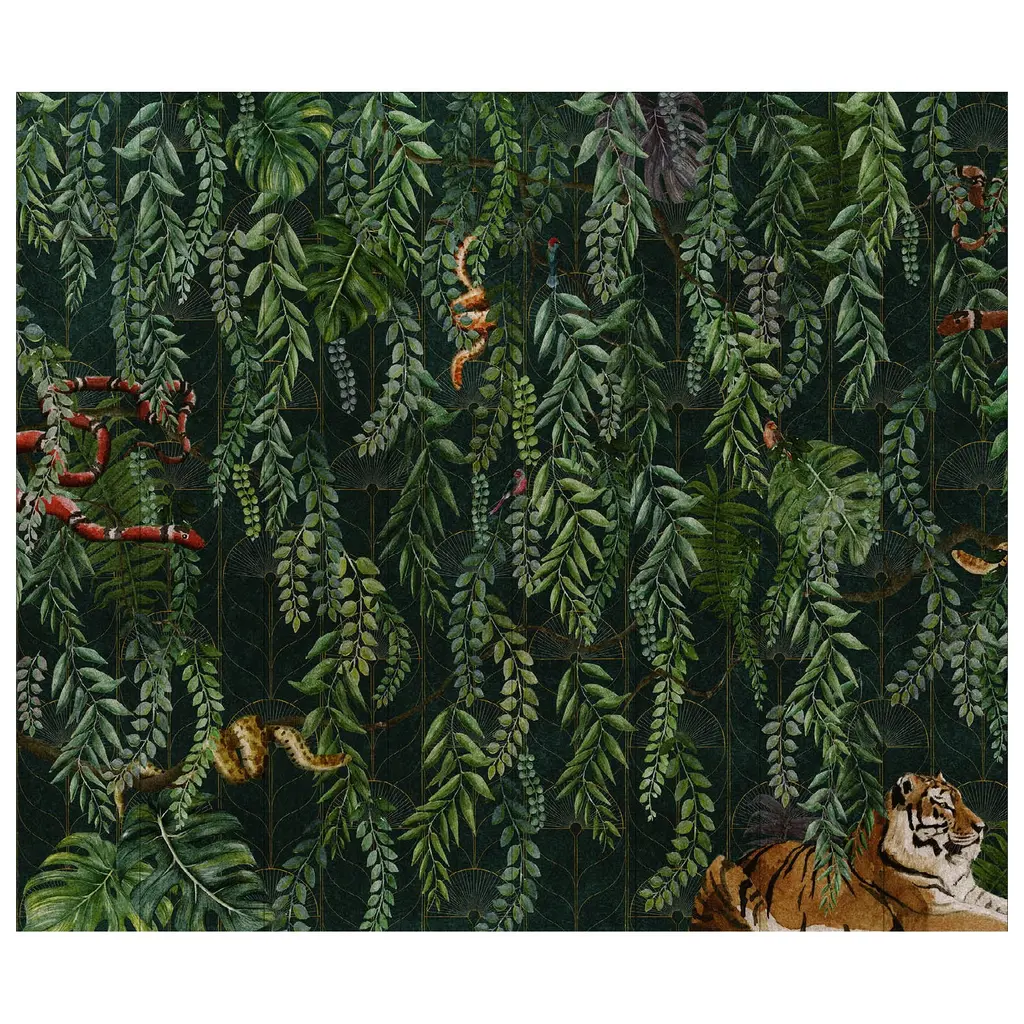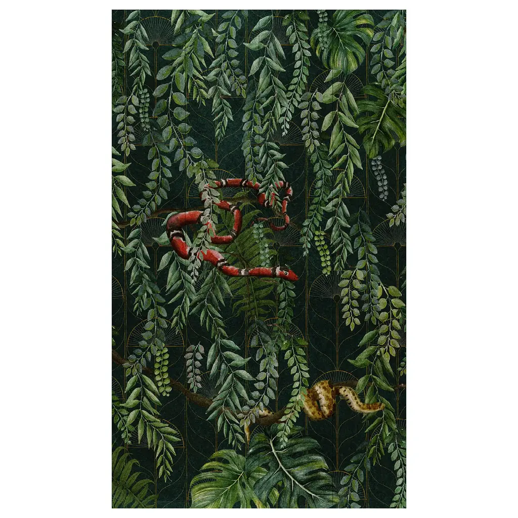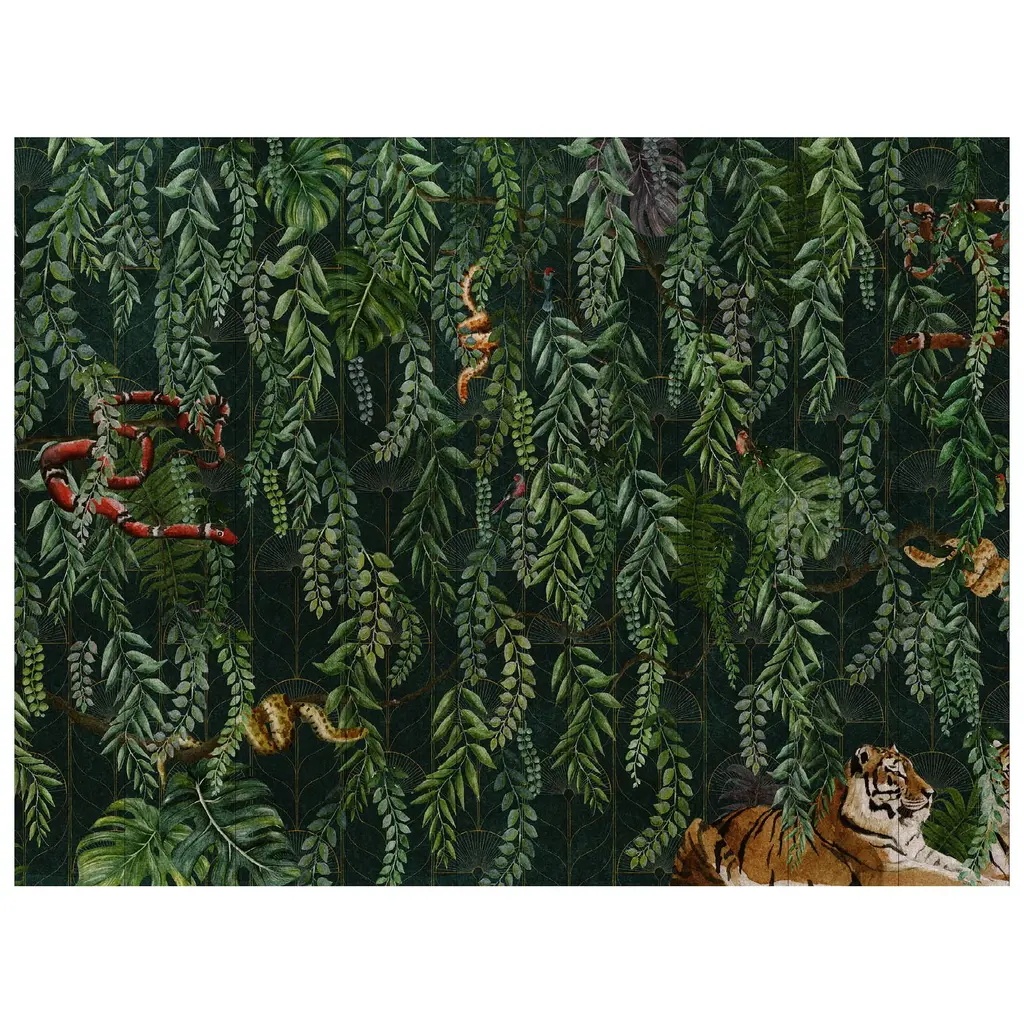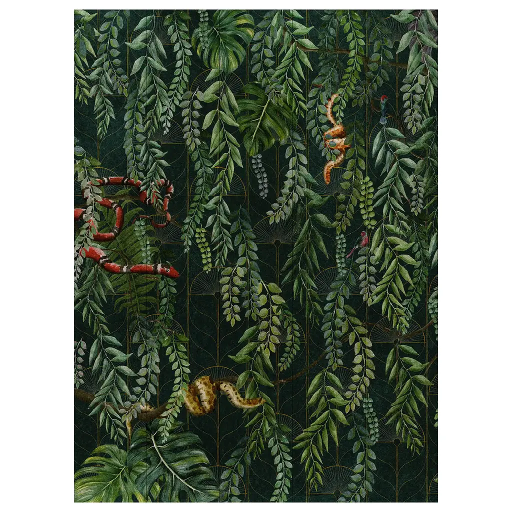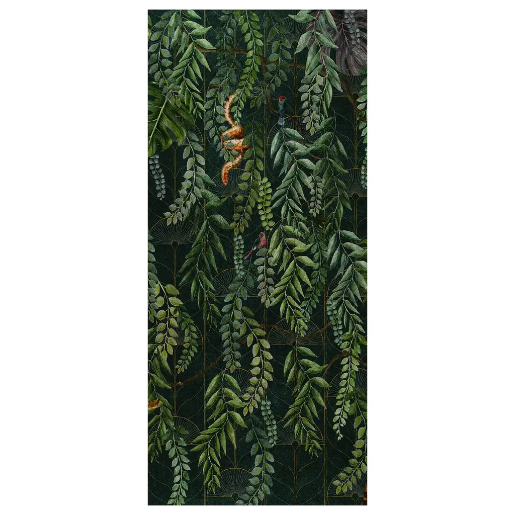 Swatches are available for this wallpaper here . The dense vegetation of the jungle falls and curls in front of a thin metal art deco structure, invades it, possesses it, traps it completely and almost only a few metallic glints are perceived... Jungle takes the place. Natural Beauty, the first collection designed exclusively by UON STUDIO for NLXL pretends to exalt the beauty and diversity of nature and make it to get in homes for becoming part of our spaces and lives. From the subtle dawn in the Amazonas, going through a romantic dreamy lake to a wild jungle. Let nature come into your home to embellish it and enjoy living surrounded by its fresh lushness. The beauty of nature is invading your home... Features