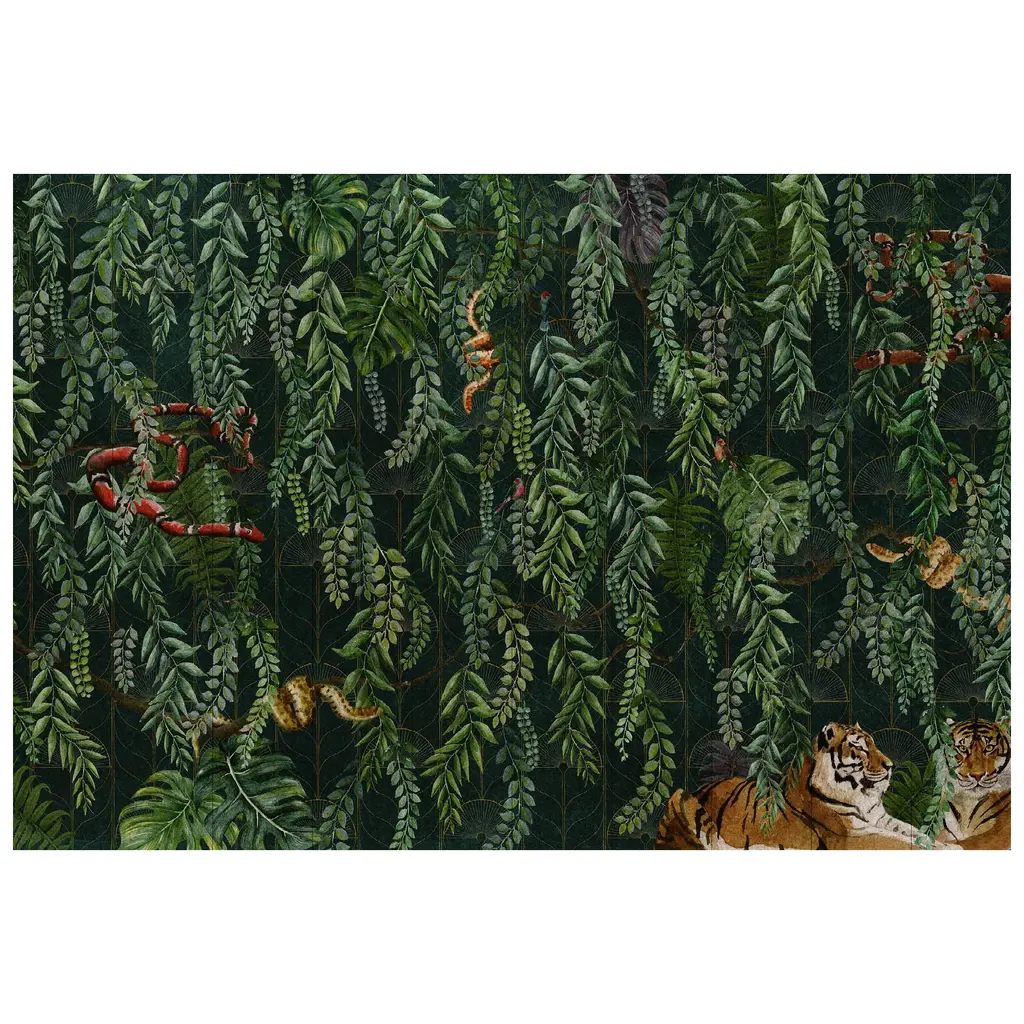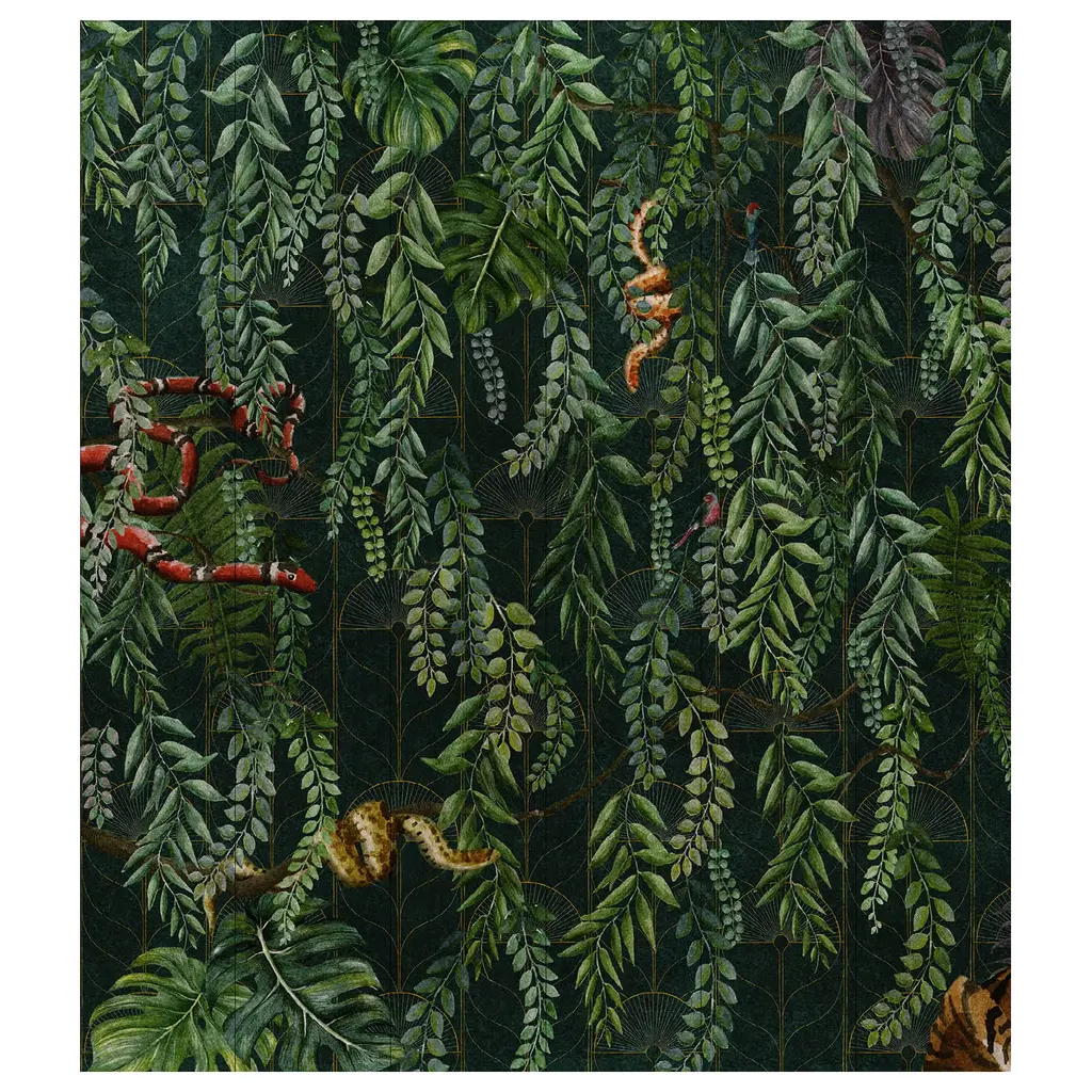 Swatches are available for this wallpaper here . The dense vegetation of the jungle falls and curls in front of a thin metal art deco structure, invades it, possesses it, traps it completely and almost only a few metallic glints are perceived... Jungle takes the place. Natural Beauty, the first collection designed exclusively by UON STUDIO for NLXL pretends to exalt the beauty and diversity of nature and make it to get in homes for becoming part of our spaces and lives. From the subtle dawn in the Amazonas, going through a romantic dreamy lake to a wild jungle. Let nature come into your home to embellish it and enjoy living surrounded by its fresh lushness. The beauty of nature is invading your home... Features