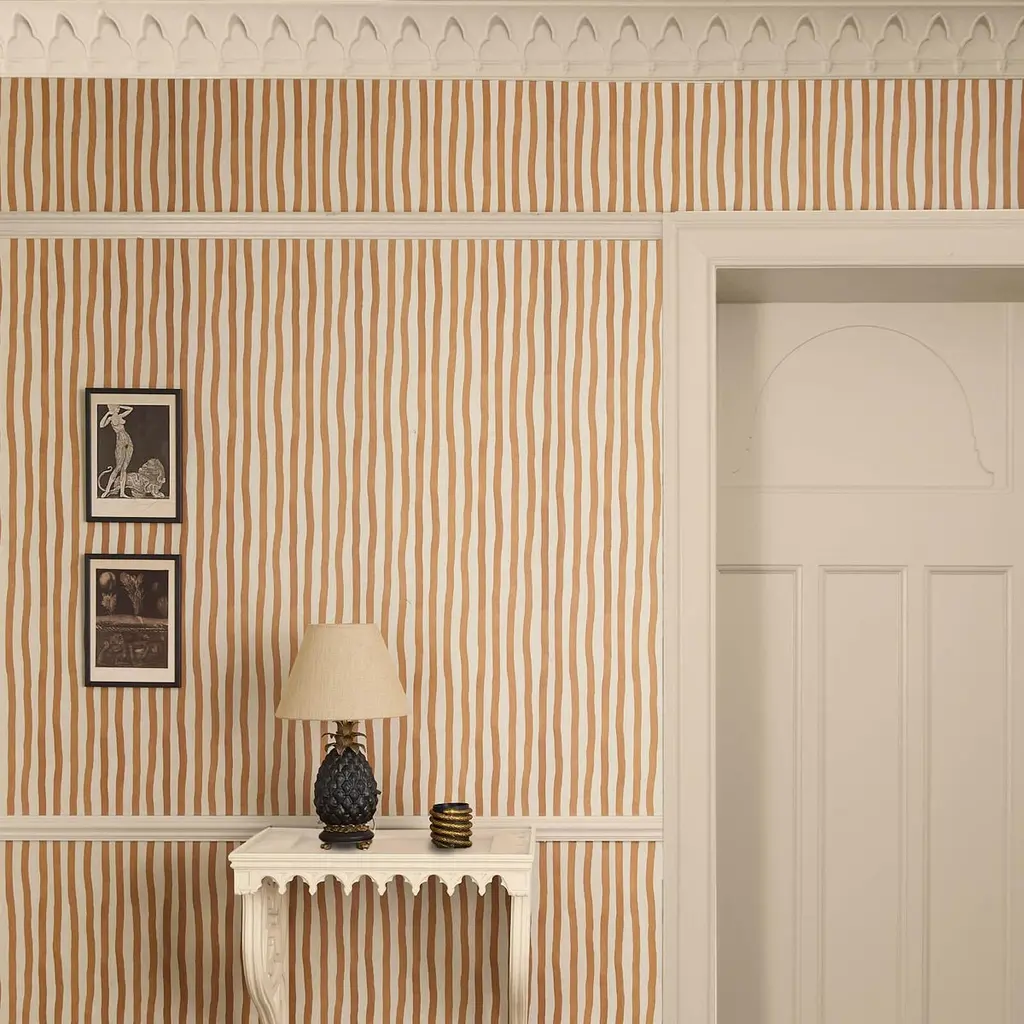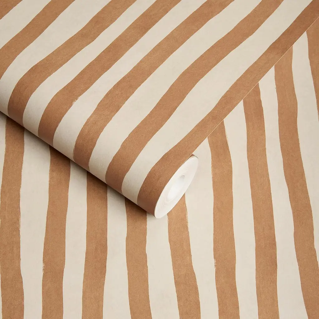 Make an understated statement with the imperfectly perfect ARTIST’S STRIPE. With hand-painted golden 'Amber' stripes against a grounding neutral backdrop, this is the perfect print to complement The Art of Nature paint collection.Our wallpaper is made using Forest Stewardship Council (FSC) certified, purposely grown materials, printed with water-based, environmentally safe inks, is PVC-free and made especially to order, reducing waste.