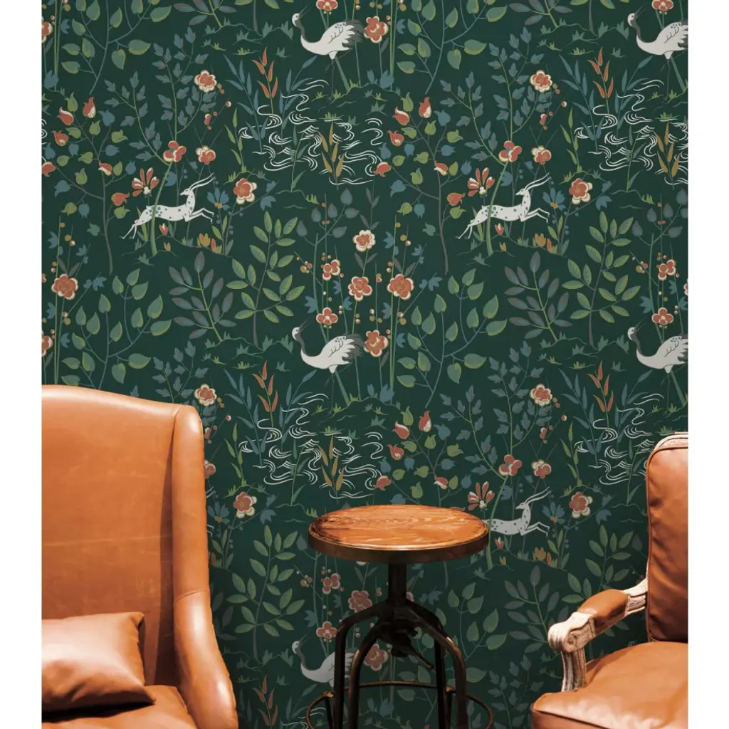Bring the freedom and lifestyle of the world traveler home and experience the luxury of everyday adventure. Printed on an unpasted paper and created with the highest quality of craftsmanship, this wallpaper is easy to install; simply apply paste to paper and hang. Pattern Aspen is a woodland and stag scenic pattern with Art Deco leanings. Includes 1 roll - 27 in x 27 ft = 60.75 sq ft with a straight match and 25.25 in repeat.