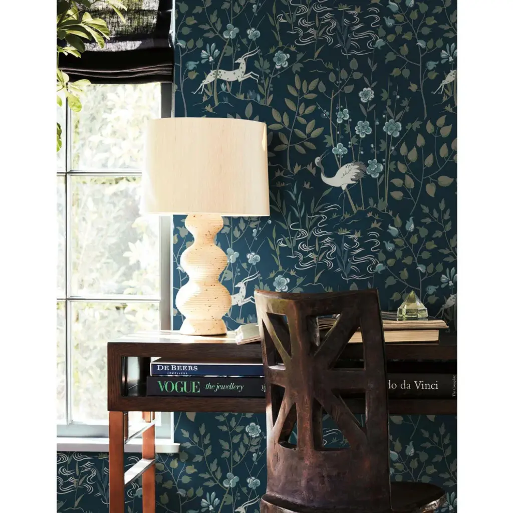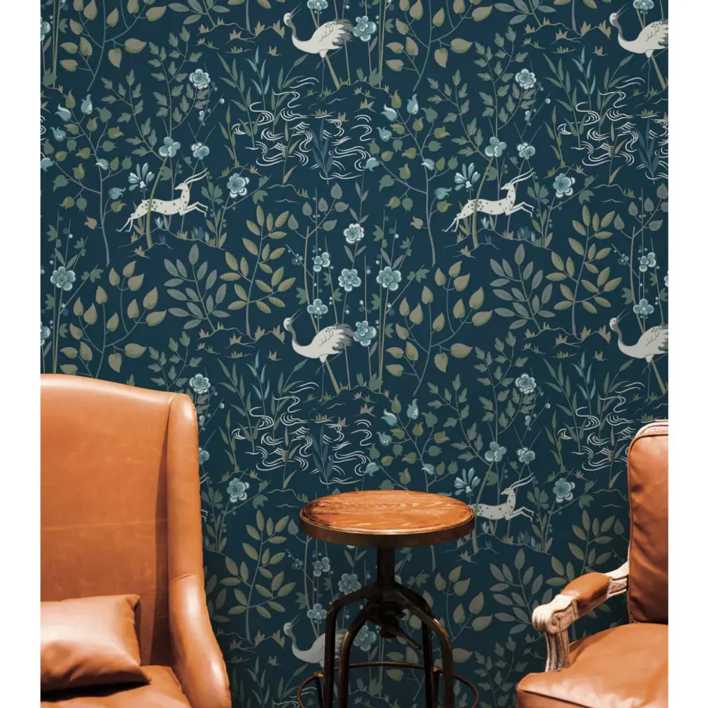 Bring the freedom and lifestyle of the world traveler home and experience the luxury of everyday adventure. Printed on an unpasted paper and created with the highest quality of craftsmanship, this wallpaper is easy to install; simply apply paste to paper and hang. Pattern Aspen is a woodland and stag scenic pattern with Art Deco leanings. Includes 1 roll - 27 in x 27 ft = 60.75 sq ft with a straight match and 25.25 in repeat.