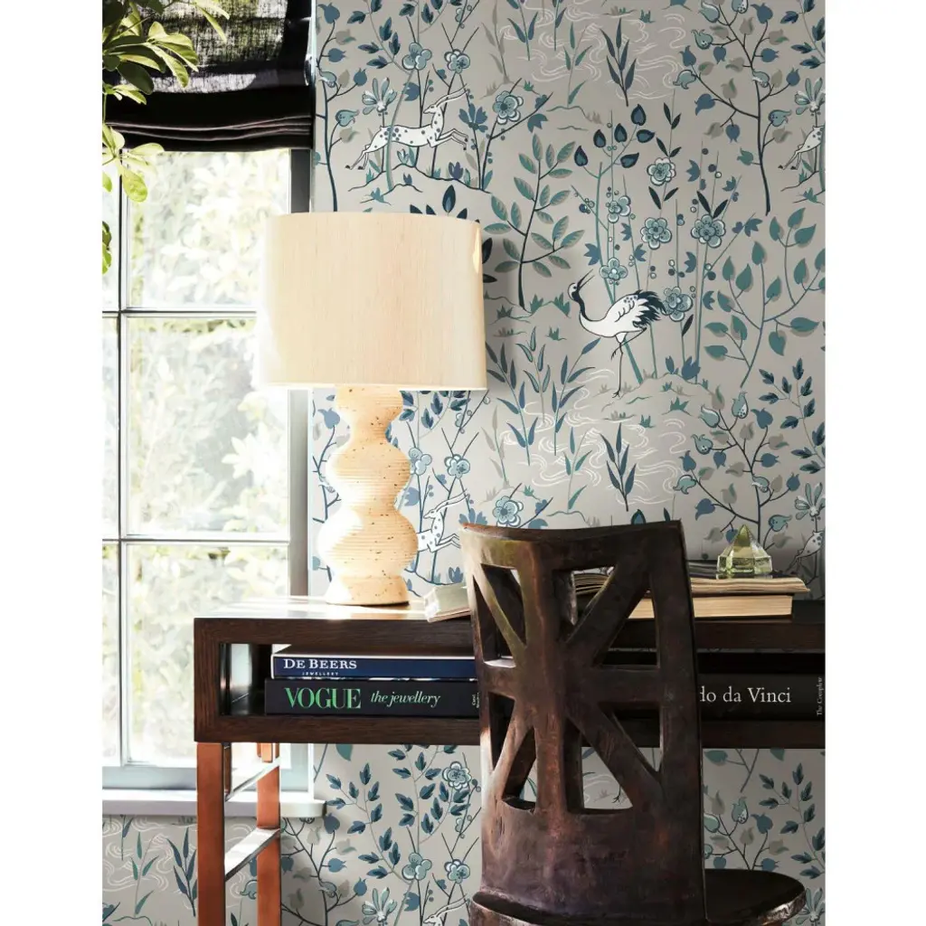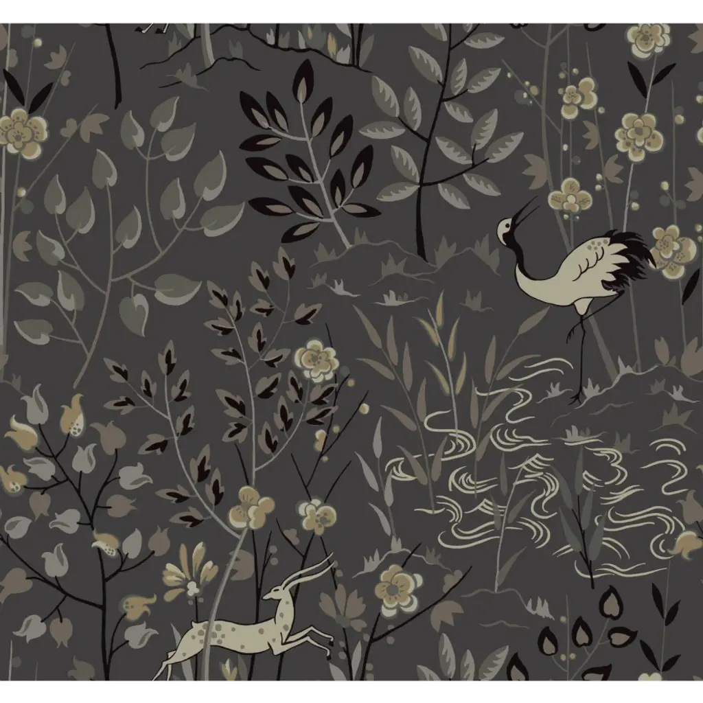 Bring the freedom and lifestyle of the world traveler home and experience the luxury of everyday adventure. Printed on an unpasted paper and created with the highest quality of craftsmanship, this wallpaper is easy to install; simply apply paste to paper and hang. Pattern Aspen is a woodland and stag scenic pattern with Art Deco leanings. Includes 1 roll - 27 in x 27 ft = 60.75 sq ft with a straight match and 25.25 in repeat.