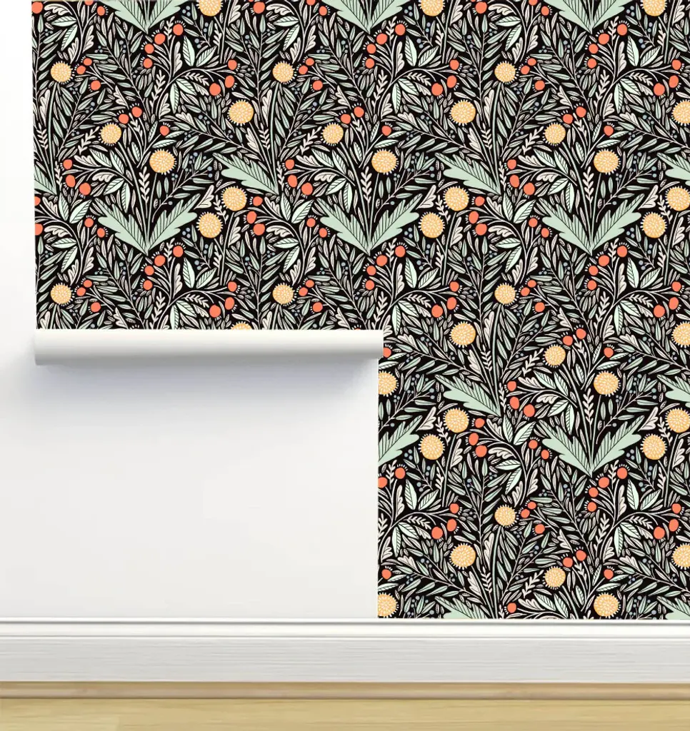 Each roll of wallpaper is custom printed to order and has a fixed width that covers 24 inches of wall space. Peel & Stick Fabric Wallpaper - Removable and Repositionable! Limitless Walls Fabric Peel and Stick wallpaper is a woven polyester fabric with an adhesive backing. Limitless Walls fabric is not like everyone else"™s, ours is the thickest most durable and easiest to install. You won"™t be able to find this anywhere else since we make it ourselves!• 100% opaque white polyester woven with adhesive backing• Eco-friendly and formaldehyde-, phthalate-, and PVC-free• To install, simply peel and stick• Easily removable and repositionable IMPORTANT NOTE Our wallpapers are not recommended for application over paints advertised as being stain-resistant or washable. These paints are crafted to prevent things from sticking -- including wallpaper. If in doubt, you can use Zinsser Gardz which is a clear primer that you can apply right over your current paint. If your wall has been recently painted, allow at least 2+ weeks for the paint to cure before applying wallpaper. Applying wallpaper over uncured paint can lead to bubbling. Our wallpaper will not stick to cement or textured walls.We highly recommend ordering a test swatch before committing to full rolls. While we have done our best to accurately represent the color and scale of this design, computer monitors aren''t the best way to determine how a printed color will look in person. It''s possible that the finished product may be slightly different than it appears in the preview. It is also important to test the adhesive on your unique surface.CARE INSTRUCTIONS:Gently wipe down with a damp cloth, soft cleaners such as dish soap can be used. The use of heavy cleaners or heavy rubbing can cause color to lift.Original Design by Amy MacCready.