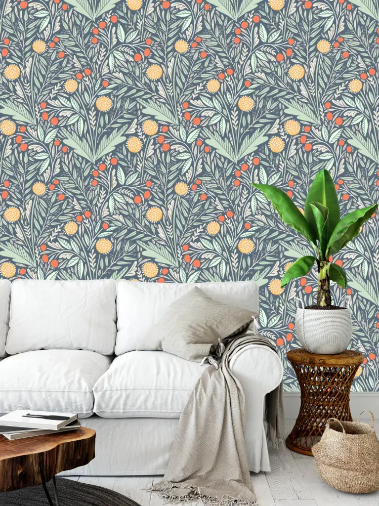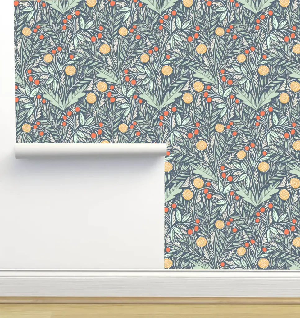 Each roll of wallpaper is custom printed to order and has a fixed width that covers 24 inches of wall space. Peel & Stick Fabric Wallpaper - Removable and Repositionable! Limitless Walls Fabric Peel and Stick wallpaper is a woven polyester fabric with an adhesive backing. Limitless Walls fabric is not like everyone else"™s, ours is the thickest most durable and easiest to install. You won"™t be able to find this anywhere else since we make it ourselves!• 100% opaque white polyester woven with adhesive backing• Eco-friendly and formaldehyde-, phthalate-, and PVC-free• To install, simply peel and stick• Easily removable and repositionable IMPORTANT NOTE Our wallpapers are not recommended for application over paints advertised as being stain-resistant or washable. These paints are crafted to prevent things from sticking -- including wallpaper. If in doubt, you can use Zinsser Gardz which is a clear primer that you can apply right over your current paint. If your wall has been recently painted, allow at least 2+ weeks for the paint to cure before applying wallpaper. Applying wallpaper over uncured paint can lead to bubbling. Our wallpaper will not stick to cement or textured walls.We highly recommend ordering a test swatch before committing to full rolls. While we have done our best to accurately represent the color and scale of this design, computer monitors aren''t the best way to determine how a printed color will look in person. It''s possible that the finished product may be slightly different than it appears in the preview. It is also important to test the adhesive on your unique surface.CARE INSTRUCTIONS:Gently wipe down with a damp cloth, soft cleaners such as dish soap can be used. The use of heavy cleaners or heavy rubbing can cause color to lift.Original Design by Amy MacCready.