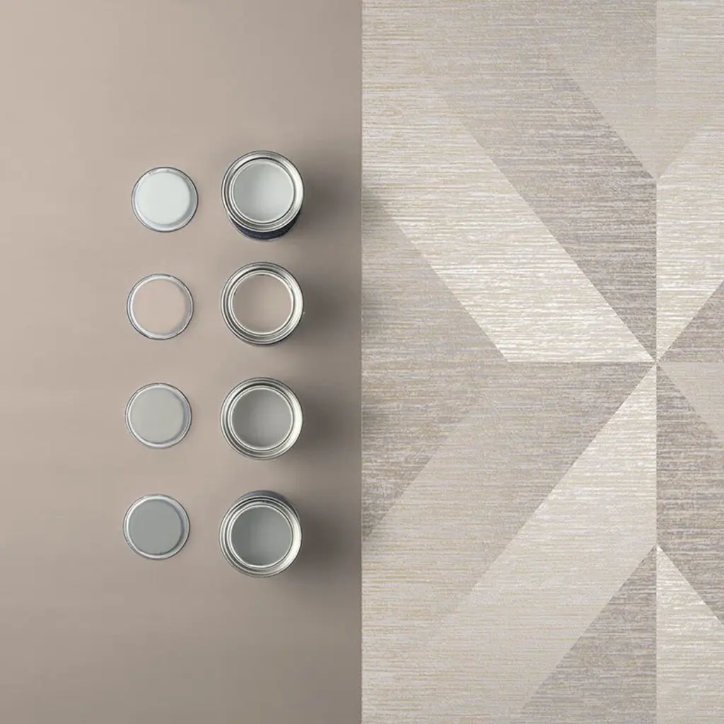 Using a medley of our G&B design center's favorite styles, this large-scale geometric print is super modern and stylish! With delicate touches of metallic and a quirky texture, this gorgeous neutral paper is a huge compliment to any wall.