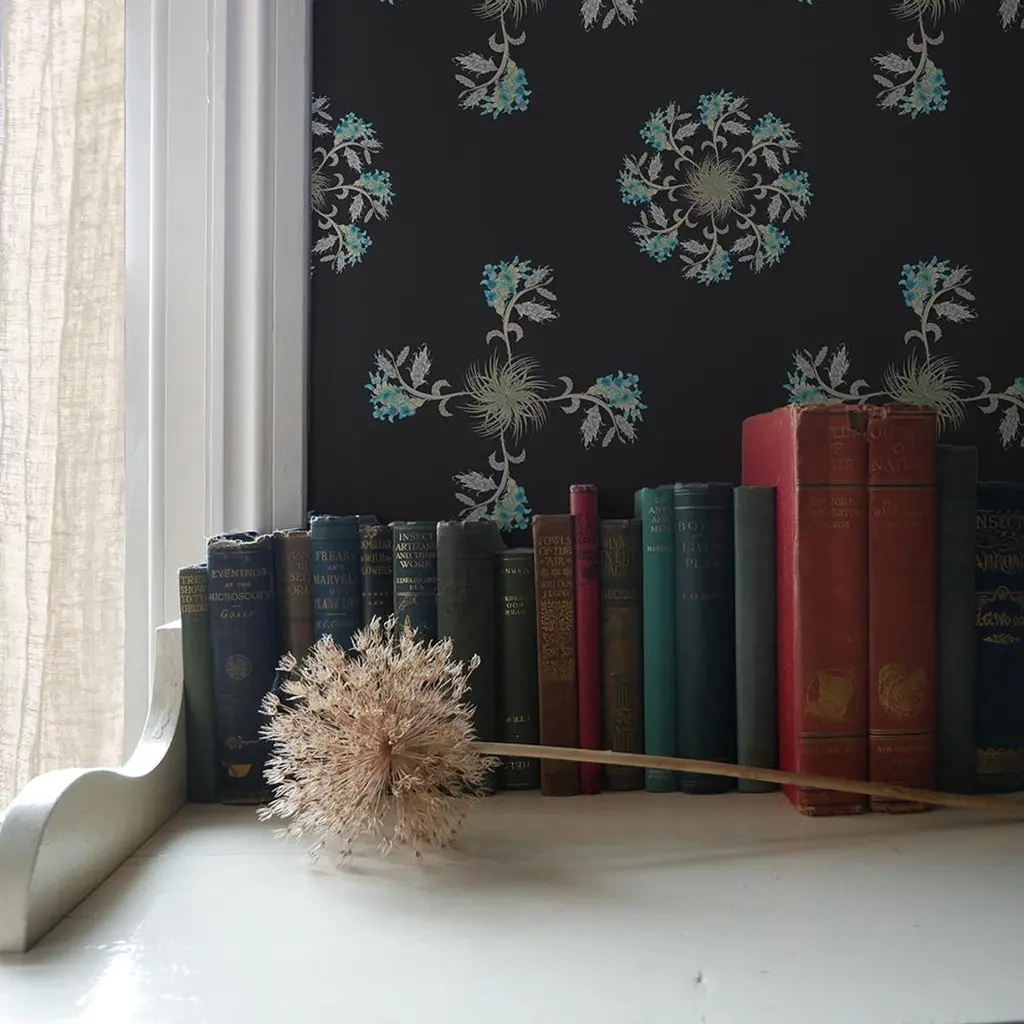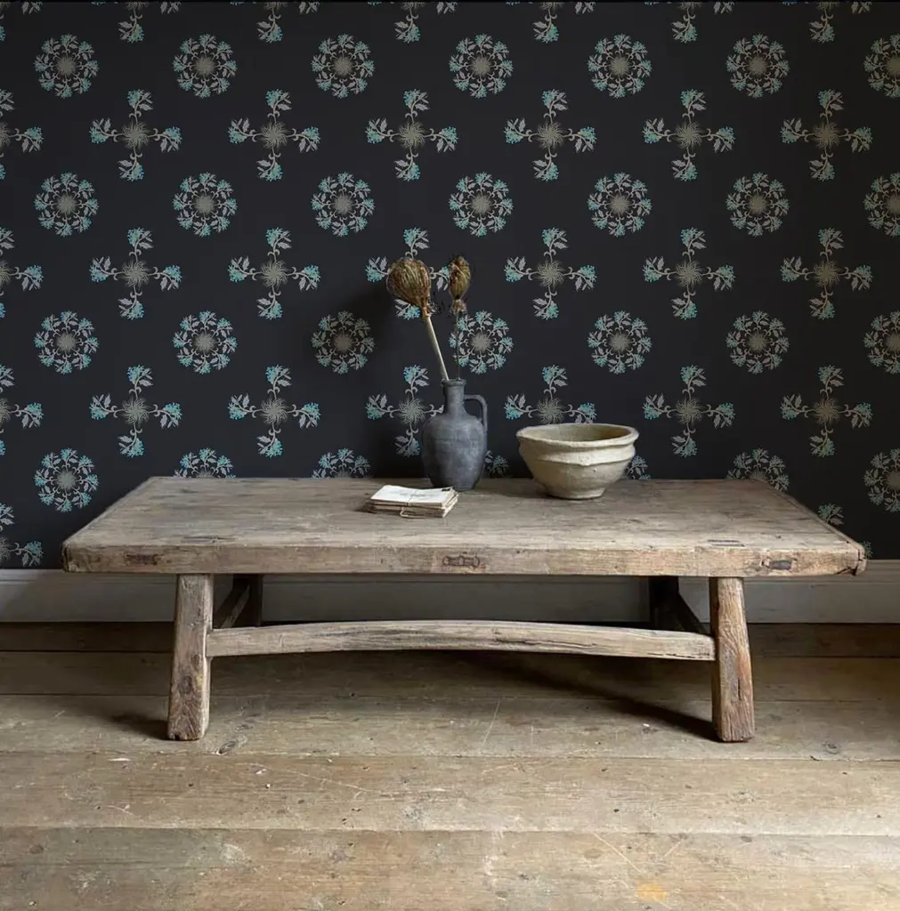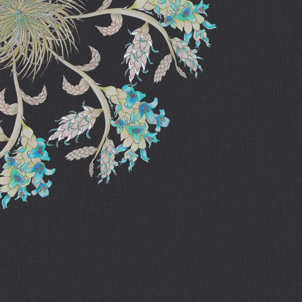 Beatrice EditProduct Code: 54BColor: SlateRoll dimensions: 70cm x 10m (27.6in x 10.9yards)Area: 7sq.m (8.4 sq.yards)Vertical repeat: 23.33cm (9.2"in)Pattern repeat: StraightWallpaper: The designs are printed on Uncoated Non-woven 147gsm. The uncoated wallpaper has a matt finish and vibrant but gentle, muted colours.Fire rating: Fire certified for both Europe and the USA. Classified to BS En 13501-1-1:2002, class B, s1, d0Puya atra, the flower upon which this design is based, is a Bromeliad. It is an important food source for spectacled bears with extraordinary turquoise flowers, an incredibly rare flower colour. The flowers are pollinated by super-heroic little hummingbirds which can fly at speeds which, relative to body length, are greater than any other vertebrate, with wing-speeds of over 80 beats per second.This design is part of The Beatrice Edit, a collaboration between biologist/designer Susy Paisley and her daughter Beatrice, who is a budding interior designer. and avowed minimalist. One day, in a conversation about their different tastes, it occurred to them to do an edit of Newton Paisley designs for people who, like Beatrice, think less is more in their interiors. Best-selling Newton Paisley designs were reimagined as one-colour 18th century toile de Jouys; favourite botanical details from other designs were reconfigured in simple airy geometrical repeats. In this, Susy and Beatrice found themselves inspired by the beautiful folk motifs of Ukrainian embroidery, and will be sending 10% of profits to a charity called Rebuild Together in Ukraine. These designs express the growing passion in interiors for honouring the natural world. Furthermore, for every roll of wallpaper sold, 100m2 of critical wild habitat is preserved through World Land Trust. This is an eco-friendly fine gicleé digitally-printed “real” wallpaper. It is printed in the UK on a natural non-woven cellulose-based substrate made from recycled materials, recycled polyester (PET) fibre and recycled wood pulp. The production process is solvent free with minimal waste and energy inputs.