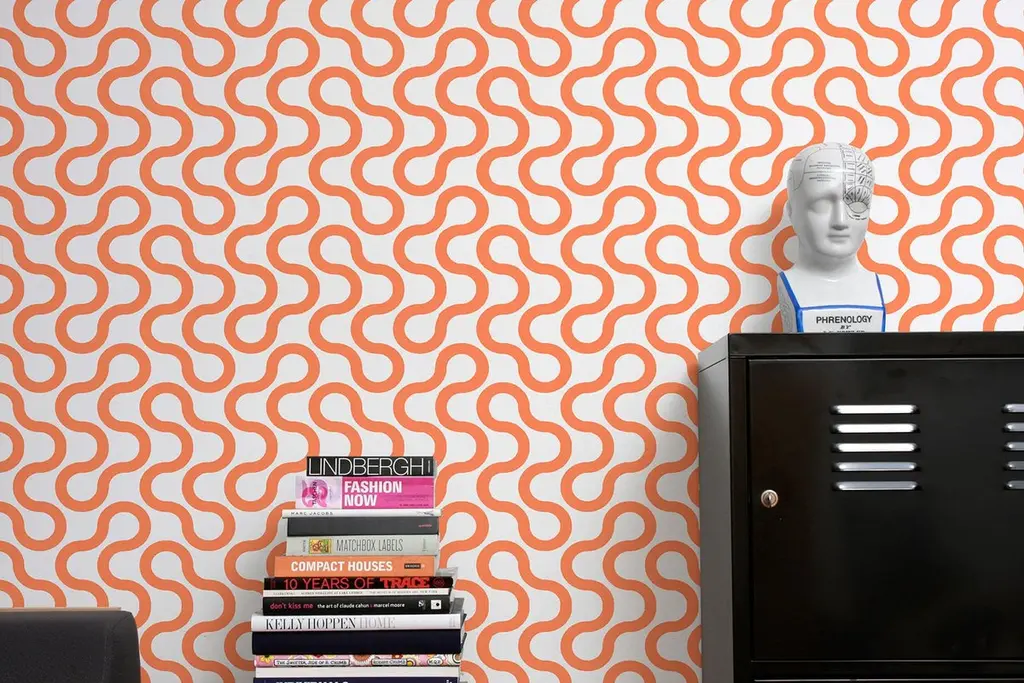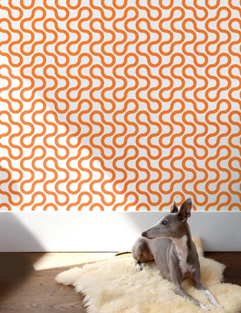 This awesome geometric by Aimée is the ultimate mod wallpaper.Samples are available for $18 including US shipping, please message us to purchase.Printing: Screen-printed by hand (minimum order and setup fees apply).Material: FSC-certified paper. Trimming: This product may come pre-trimmed or untrimmed. Packaging: May be shipped as double rolls, or as a combination of double and single rolls. Single roll: 28 inches × 5 yards (71.1 cm × 4.5 meters) Sheet: 28 × 36 inches (71.1 cm × 91.4 cm)Sample:~ 8 × 10 inches (20.3 × 25.4 cm)Design Repeat: 35 inches (89 cm) Design Match: StraightMain Element Size: 1 Element measures 7.5 inches (19 cm) tallMade in the USA. Ships worldwide.Commercial grade options available; please contact us for more information.