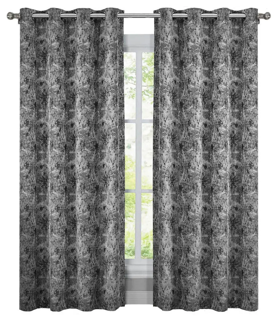 Bali 2Pc Blackout Abstract Grommet Curtains, Black, 108"x96"