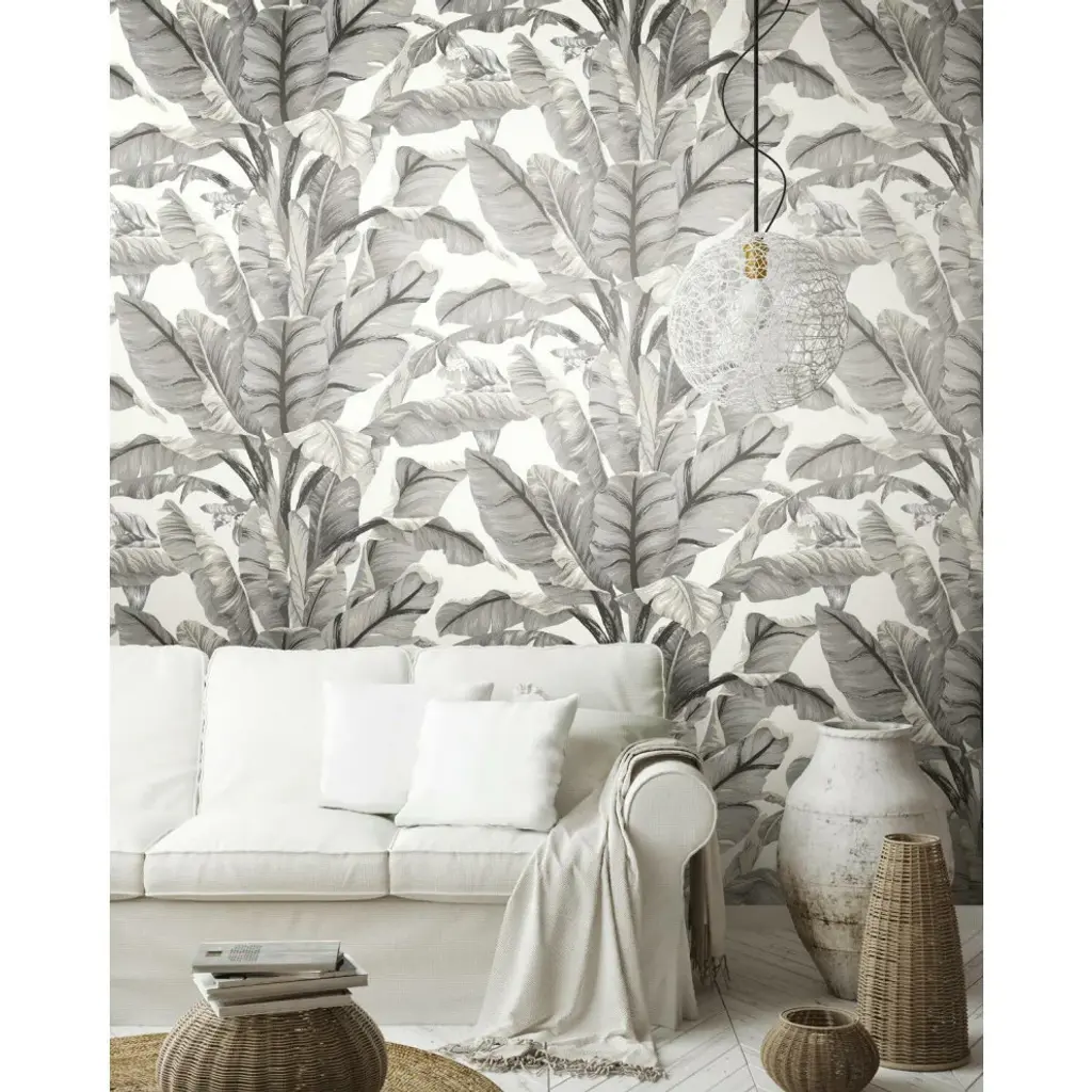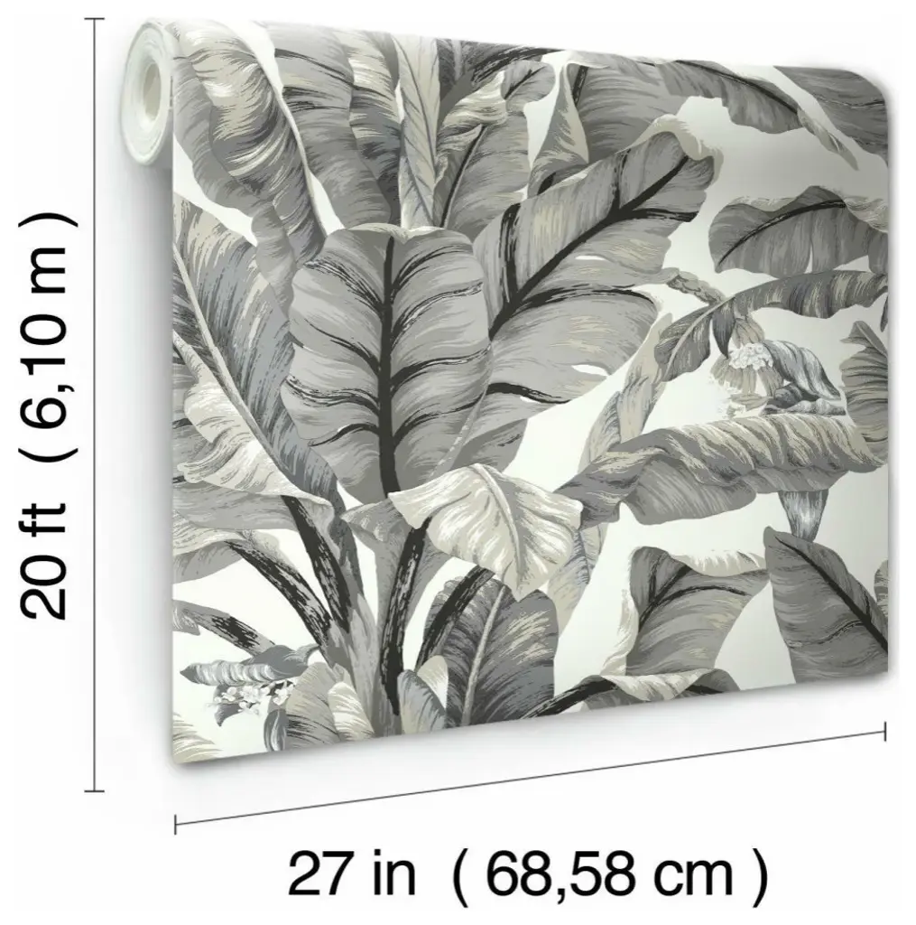 This product is a superior luxury non-woven peel and stick wallpaper, which removes easily in full strips without damage to surfaces. Sizable leaves seem to sway in the trade winds revealing the flowers on this Banana Leaf wallpaper. The tall plant speaks of the tropics and of sun kissed days on the lanai. Includes 1 roll - 27 in x 20 ft = 45 sq ft with a drop match and 25.25 in repeat.
