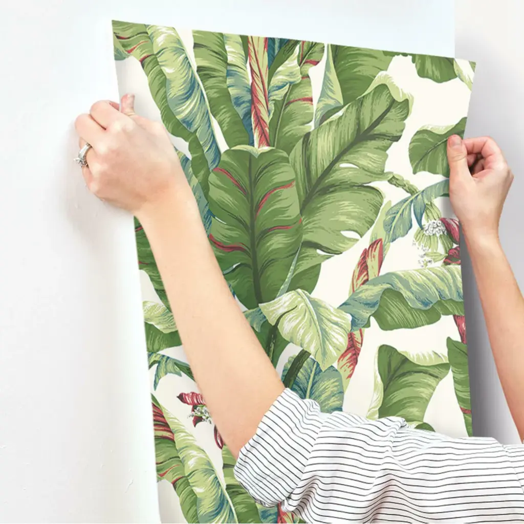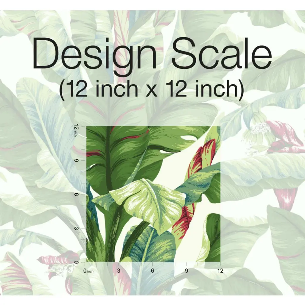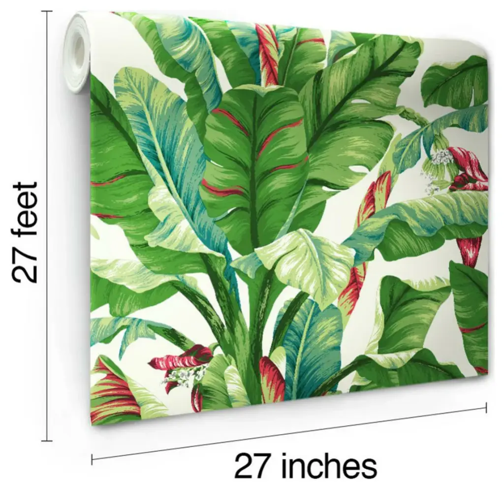 Tropical style is much more than untamed gardens of exotic beauty. It is the embodiment of modern affluent lifestyle and leisure. Manufactured on Sure Strip, a unique high performance substrate, this ultra-easy removable wallpaper is guaranteed easy to install and easy to remove; simply use water to activate. The flowering palms of pattern Banana Leaf sway in tropical breezes, invoking memories from a classic age of glamour. Includes 1 roll - 27 in x 27 ft = 60.75 sq ft with a drop match and 25.25 in repeat.