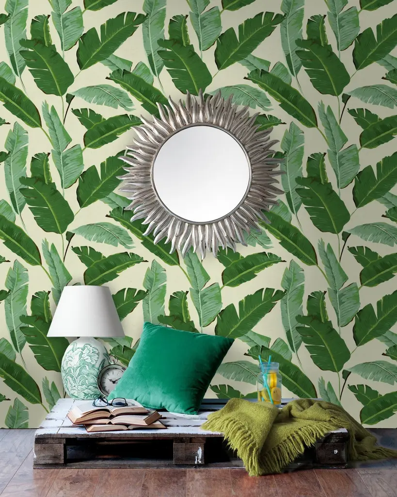 Banana Leaves Wallpaper In Beige And Green From The Tropical Vibes Collection