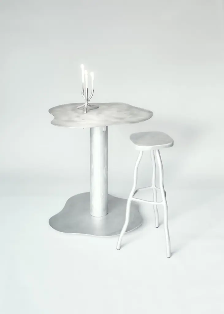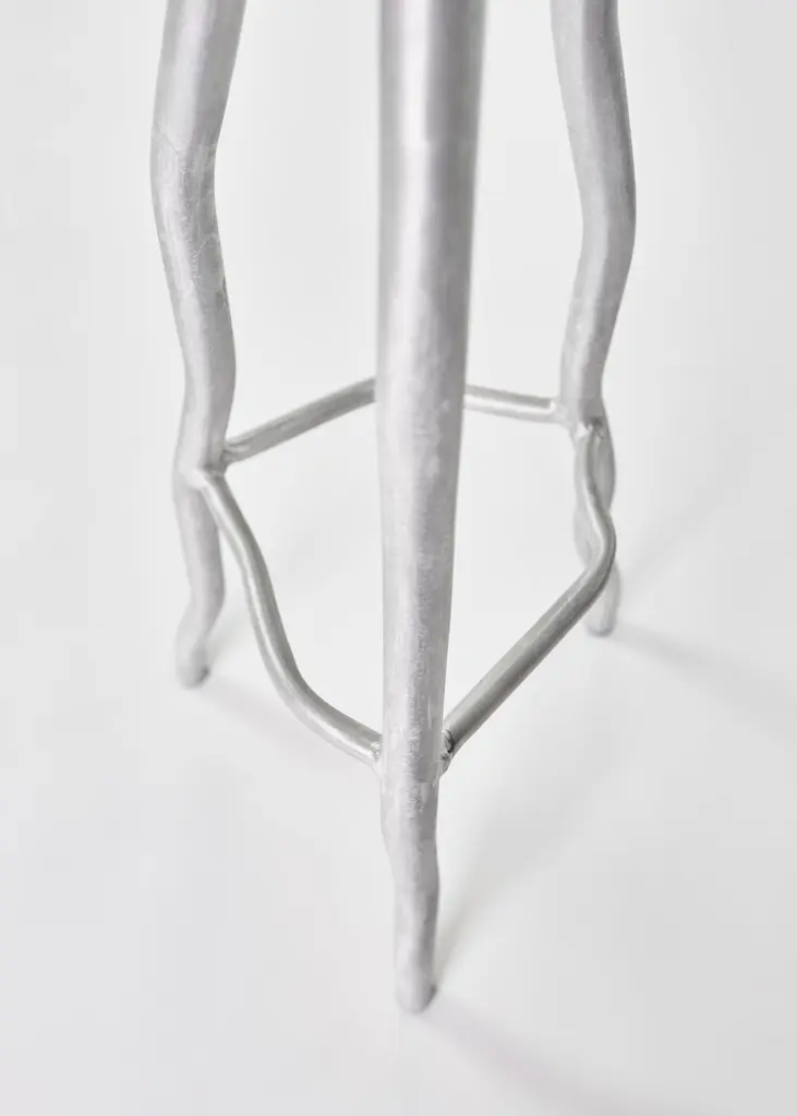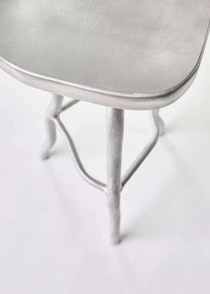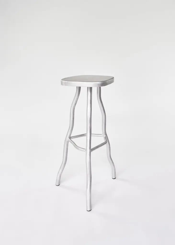 Joseph Ellwood is a British designer and maker, he has been named one of 10 'Future Icons' in design by Wallpaper magazine, collaborated with the luxury brand Rimowa and embarked on numerous exciting projects for 2023. He set up his design and manufacture studio: Six Dots Design in 2020The tall stool is a bar stool that provides comfort and stability to anyone who may rest upon it. We love the rubberised feet, uniqueness of each piece and the visual impact it gives to any interior.Each of our pieces are made from raw finished aluminium, a material that can be readily reused and recycled. This recyclability, coupled with new low carbon cathode technologies, make aluminium a sustainably plausible material for the future.The aesthetic of our work aims to challenge and disrupt the mid-century norms of furniture today. I have taken inspiration from the likes of Perriand and Prouvé and distorted their pieces to create a body of work that relates to our current generation. The lives we live today are fluid in gender, identity, expression and thought. Our work represents this confusion, indecision and anxiety in a whimsical and endearing way.Each of our pieces is hand made to order, therefore slight variation from object to object can be expected.