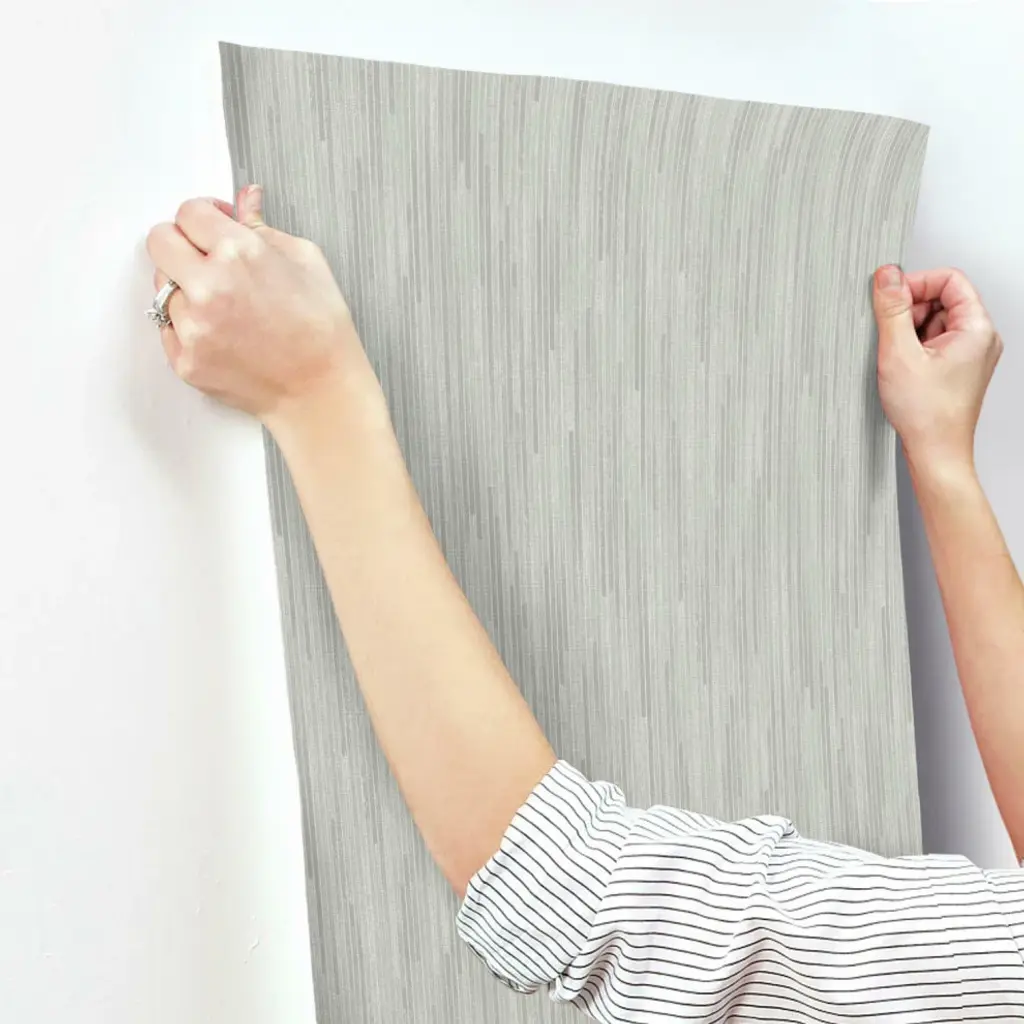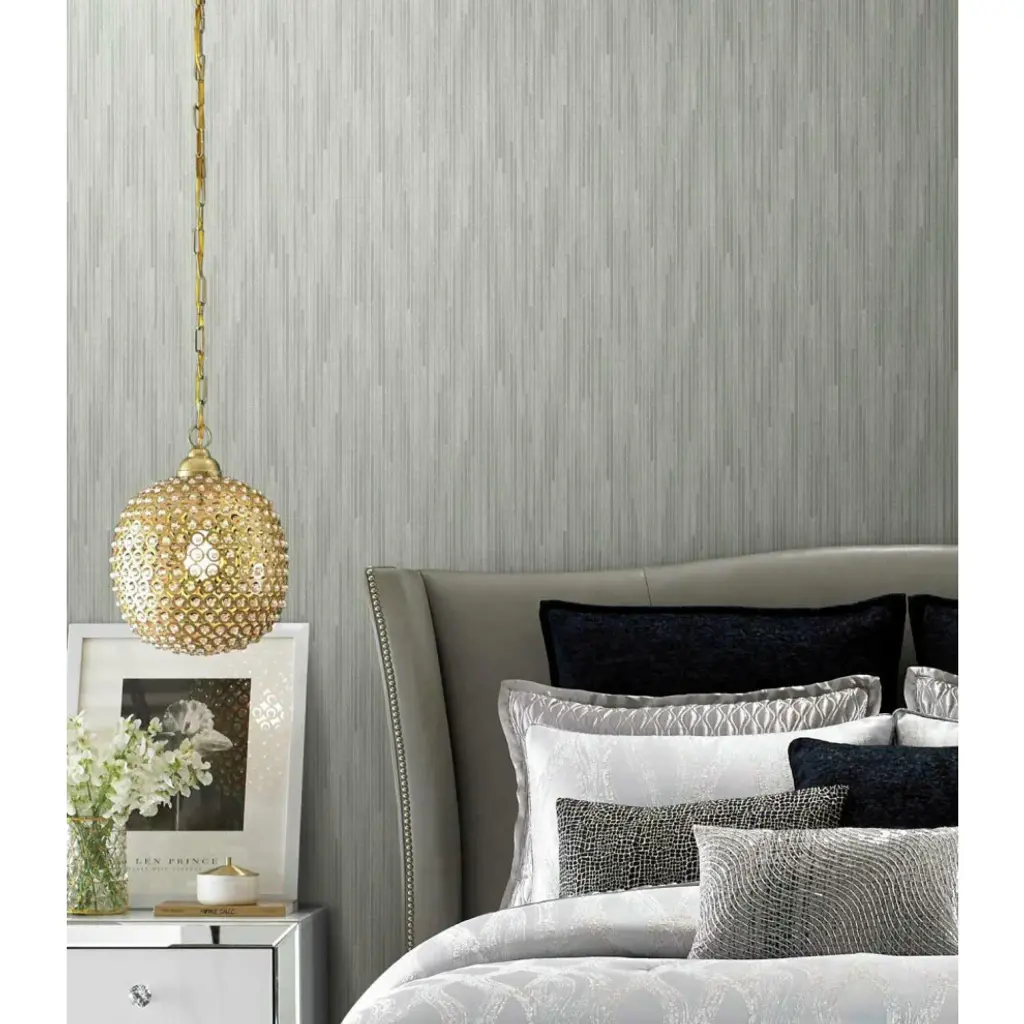 Slender vertical stripes in soft gradation of colors with subtle metallic highlights is so pleasing to the eye it would be a welcome in most any room with nearly any style decor. This is versatile Bargello Wallpaper. This Bargello Wallpaper measures approximately 27 inches wide by 27 feet long, covering About 60.8 square feet per roll. Durable and easy to remove from primed walls, this friendly to hang unpasted nonwoven wallpaper is created with a special blend of synthetic fibers, making it both easy to hang and tear resistant. Unpasted non woven material; 25.25-in repeat, straight match; Washable and strippable; 27-in by 27-ft long roll; Covers about 60.8 square feet