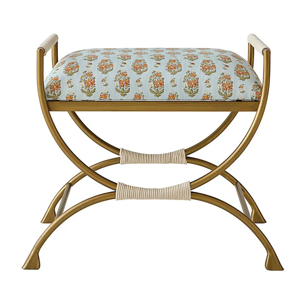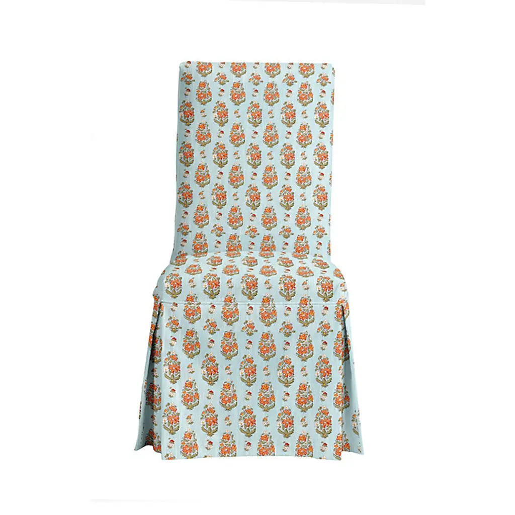 Our Beatrice Apricot Fabric by the Yard was inspired by a classic Indian block print. The sweet floral motif is printed on supple 100% cotton in hues of sage, apricot, goldenrod, and touches of red on a sky blue background. Beatrice Apricot is available in matching wallpaper, so you can coordinate upholstery, drapery panels, and decorative pillows with your walls for a custom designer look. Part of our exclusive Cotswolds Collection of Fabric and Wallpaper, this beautiful fabric and its matching wallpaper design were created especially for us by a century-old textile and wallpaper printer in the heart of England. The quintessentially British firm is world renowned for its exquisite patterns, lush colors, and time-honored craftsmanship.Content: 100% Cotton Repeat: Non-railroaded fabric with a 3 5/8" repeat Care: Professional dry clean only, do not tumble dry, do not bleach, cool iron on reverse of print. Width: 54" wide Because fabrics are available in whole-yard increments only, please round your yardage up to the next whole number if your project calls for fractions of a yard. To order fabric for Ballard Customer's-Own-Material (COM) items, please refer to the order instructions provided for each product. Ballard offers free fabric swatches. Shipping and Processing fees apply. Ten swatches maximum. We're sorry, cut fabric is non-returnable.
